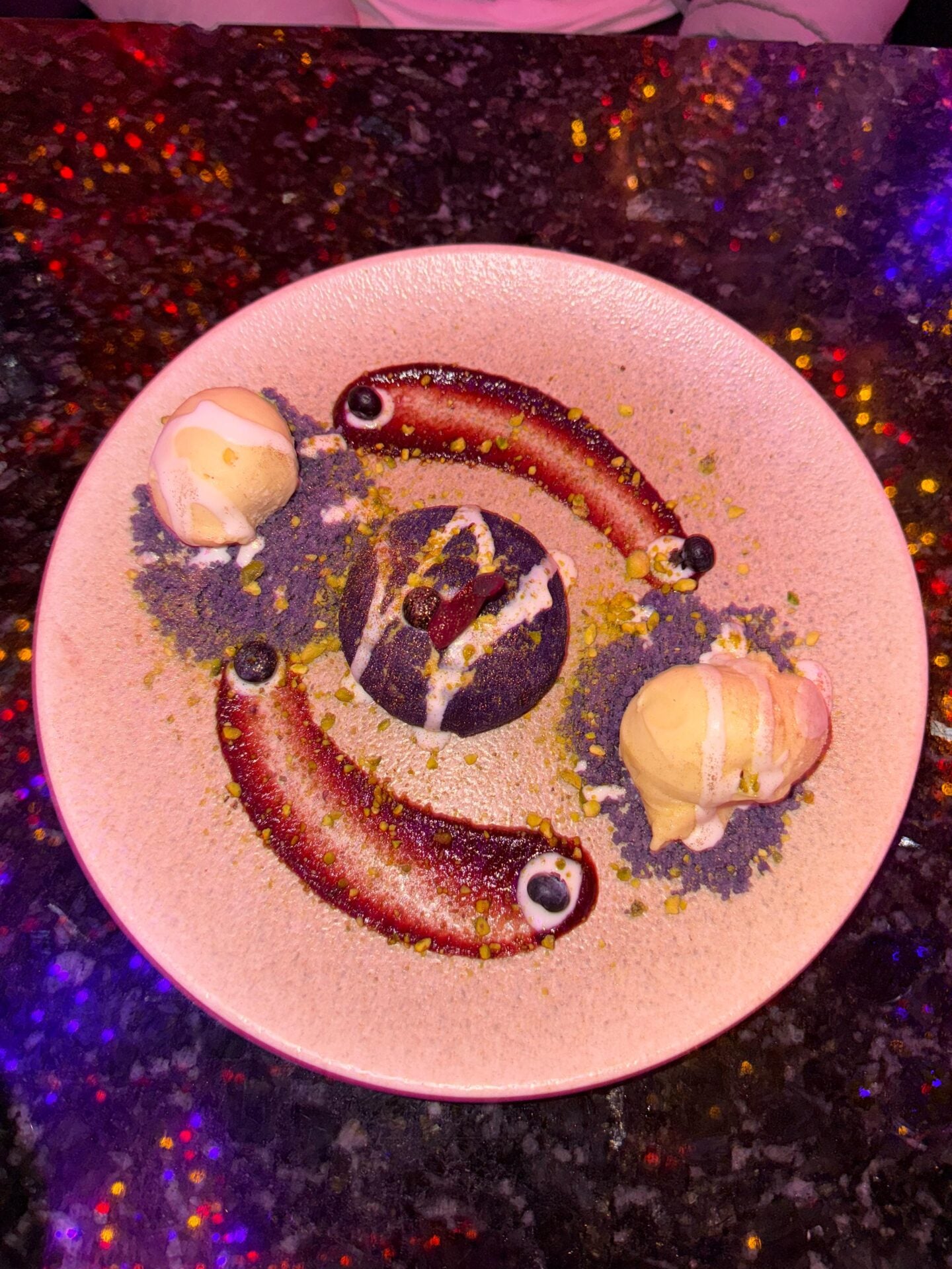 Masa choux horneada y rellena de crema pastelera de cardamomo, acompañada de toques frutales y helado de yogur. Este postre viene bien luego de una cena, además es perfecto para los amantes de un toque dulce para el final.