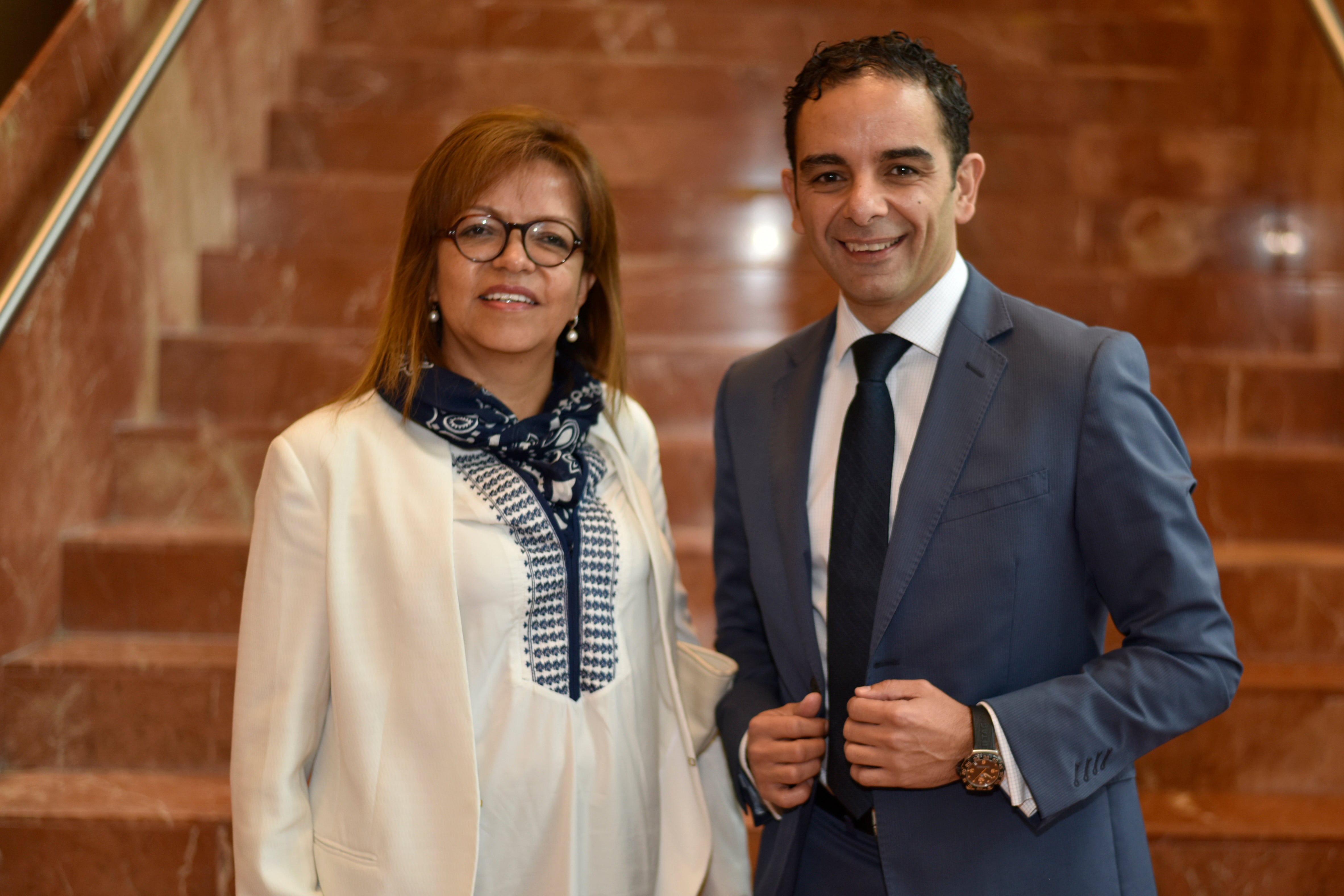 Elsa Aurora Bohórquez en compañía de David Herranz, CEO Latam Adecco, durante el encuentro de empresarios reunidos para hablar de la situación laboral nacional.