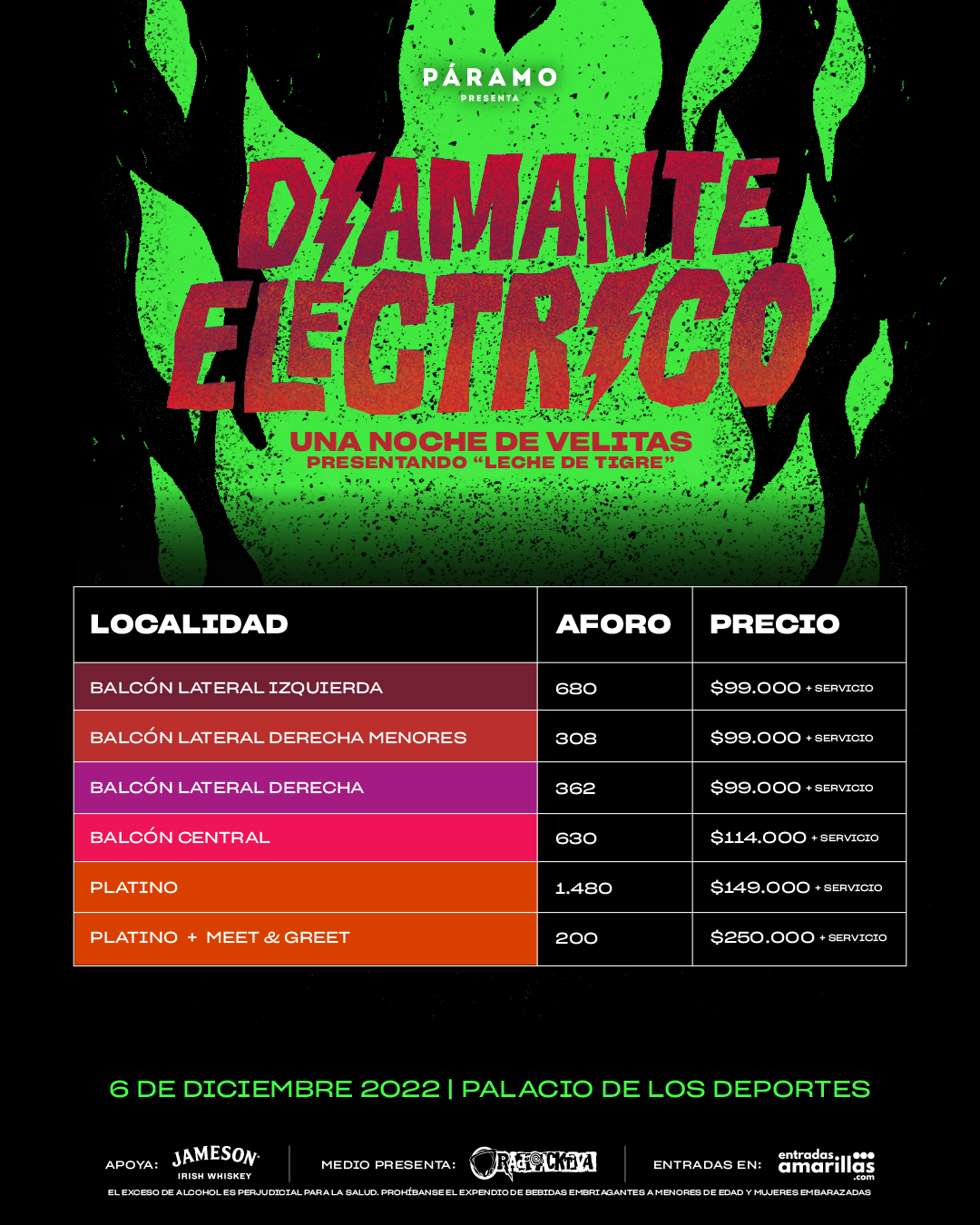 Por otro lado, para cerrar una agenda variada, Páramo tendrá a Diamante Eléctrico en el Palacio de los Deportes el 6 de diciembre. Fecha en la que conmemorará una década desde que la agrupación lanzó sus sencillos “Diamante Eléctrico” y “Nos rompemos igual”.