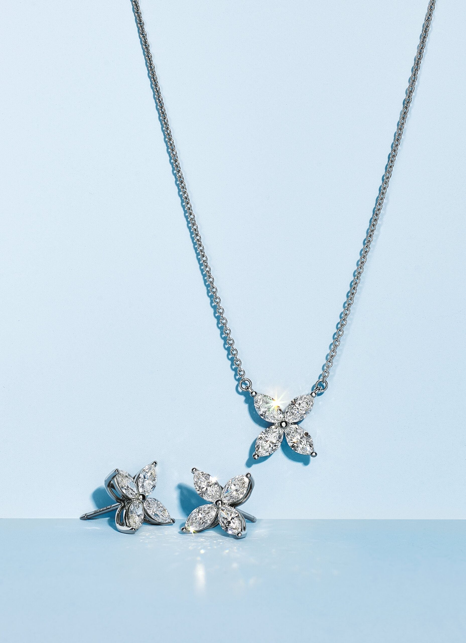 Colgante y pendientes Tiffany Victoria en platino con diamantes