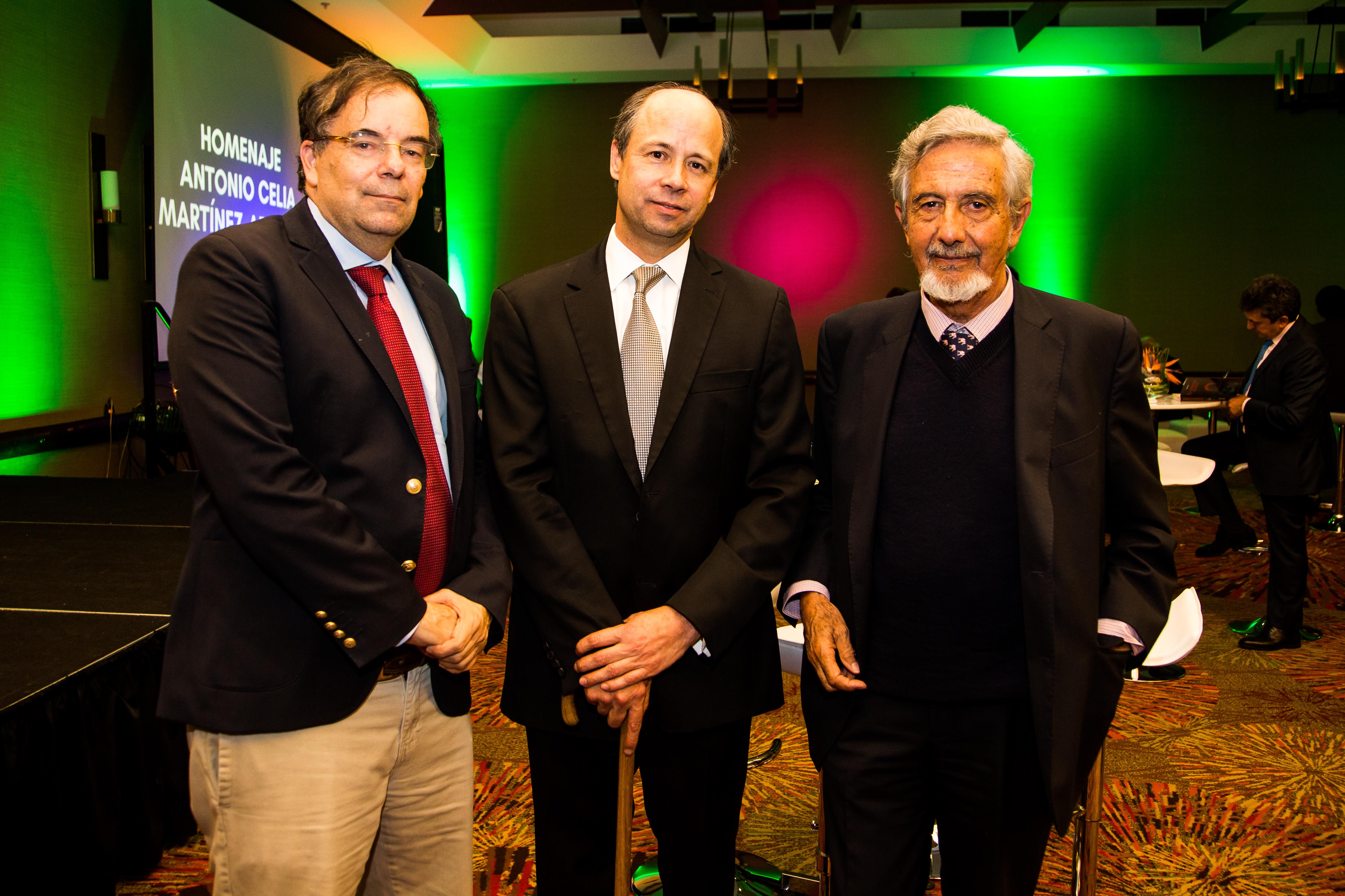Santiago Montenegro Trujillo, presidente de Asofondos y José Alejandro Cortés, expresidente del Grupo Bolívar hicieron presencia en el homenaje que se le rindió a Antonio Celia.