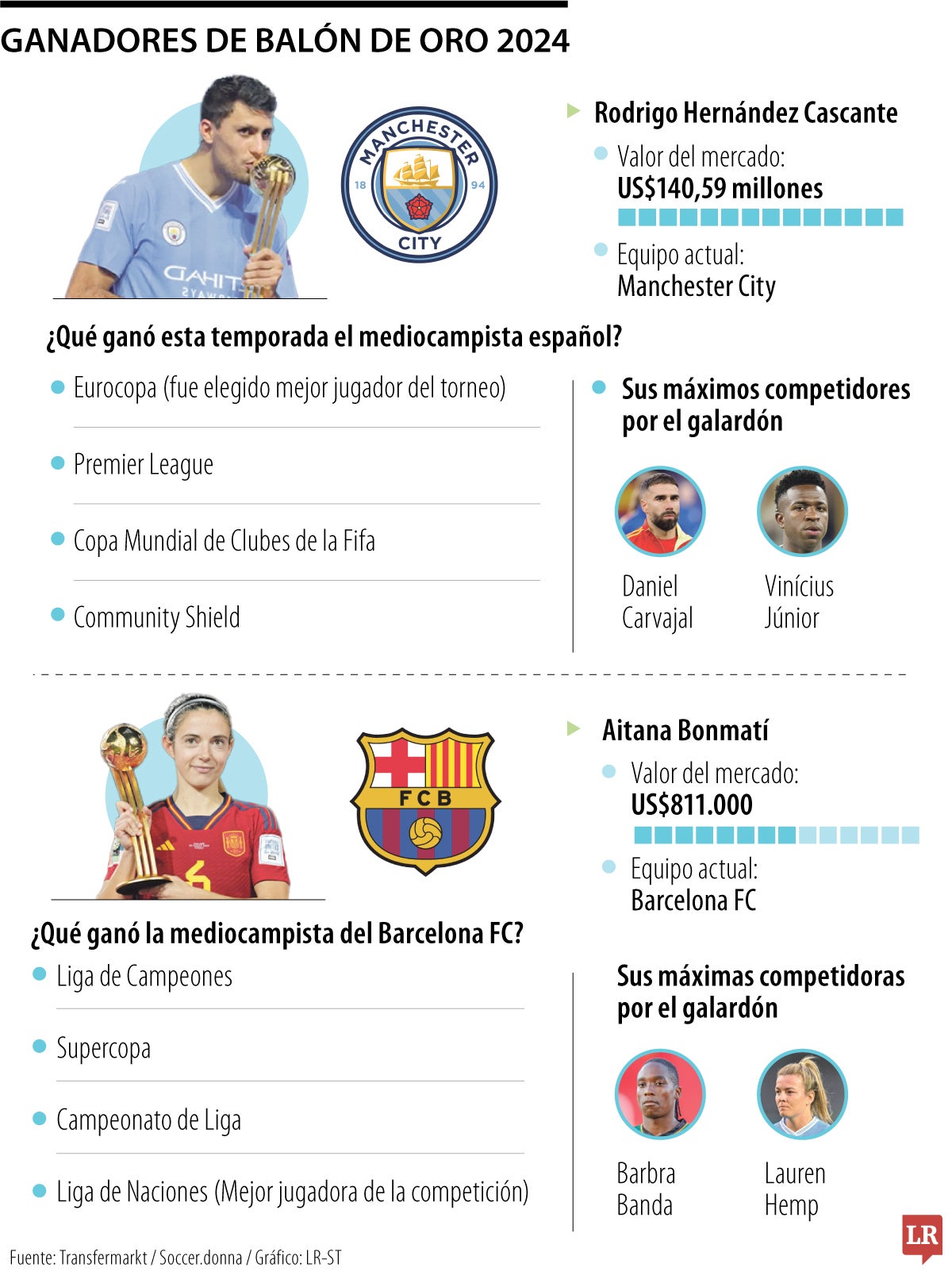 Rodrigo Hernández y Aitana Bonmatí fueron los ganadores del Balón de Oro 2024