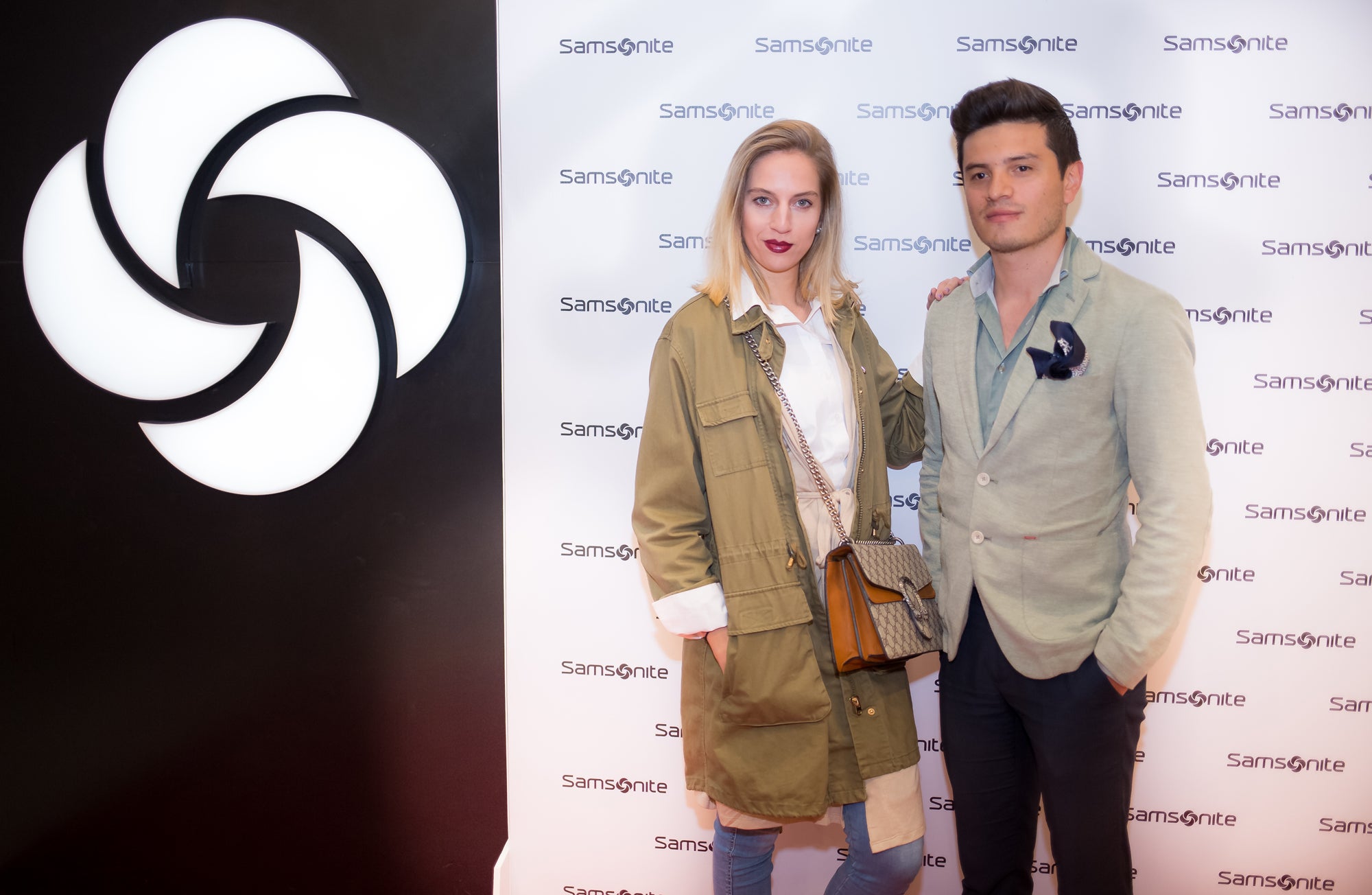 Andrea Mateos y Camilo Aristizábal, influencers, estuvieron en el evento, en el que se dio a conocer la colección de carteras Ladies Handbags de Samsonite.
