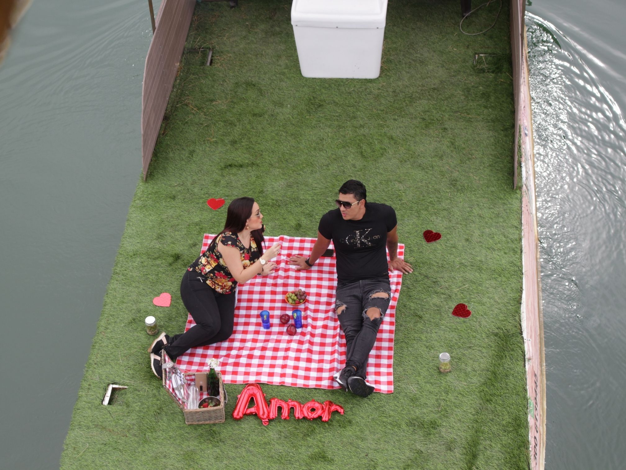 Las parejas más románticas y tradicionales pueden disfrutar de un picnic flotante, acompañado de piano y saxofón en vivo y privado. Este plan incluye una cabaña, un jacuzzi y un masaje. Esto tiene un precio de $690.000 por pareja.
