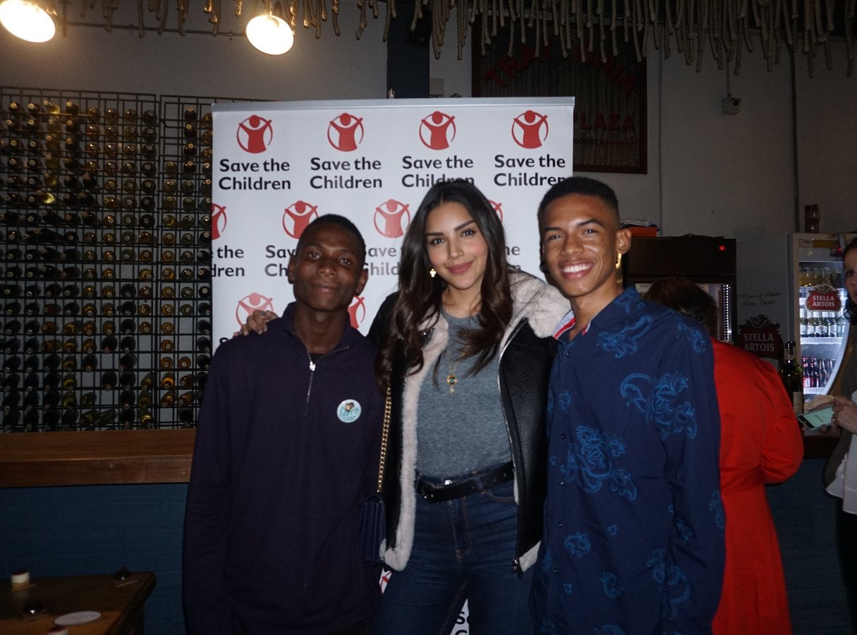 Lali Fernando Riascos, beneficiario de Save The Children; Laura Barjum, exmodelo, actriz y reina de belleza colombiana, y Andrés Rodríguez, beneficiario.