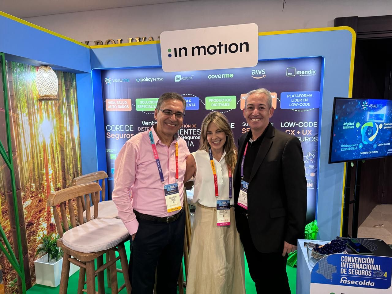 Carlos César Erazo, gerente de operaciones In Motion Colombia; María del Pilar Camargo, vicepresidenta ejecutiva de Colsanitas Seguros; y Pablo Moreno, CEO In Motion.