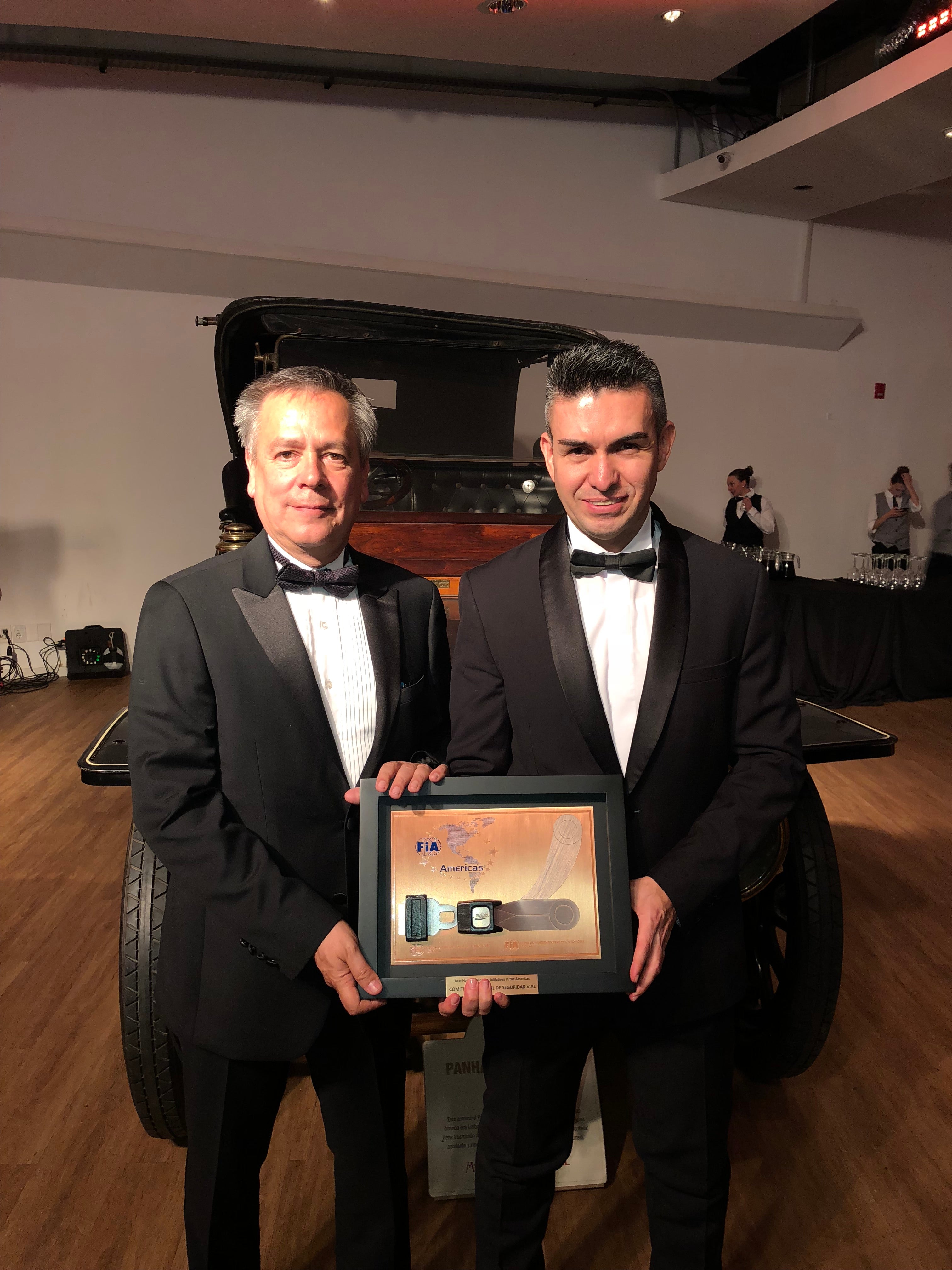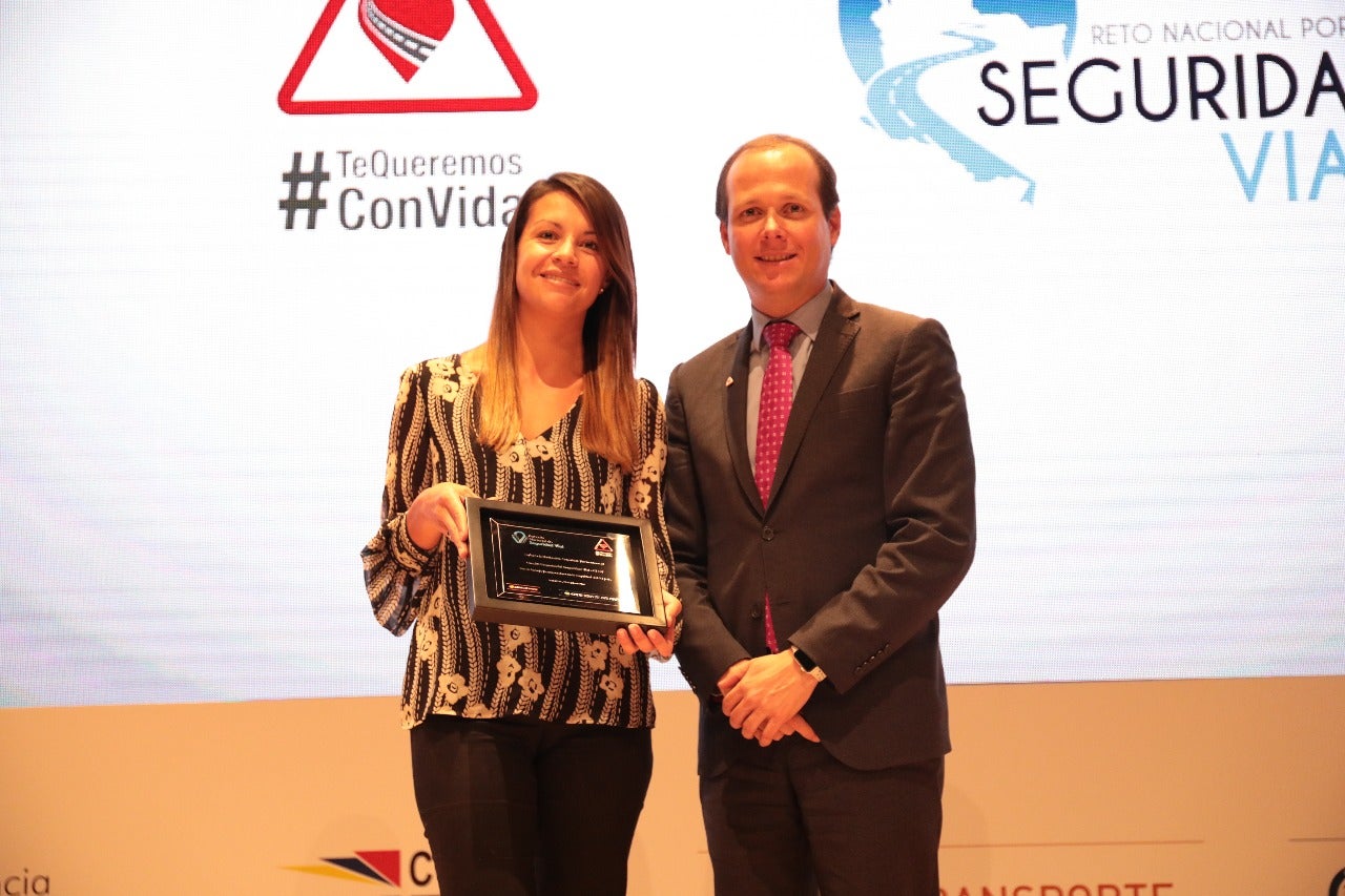 Alfredo Albornoz, gte. gral. Automóvil Club de Colombia (FIA), y Felipe Vélez, Director de Soporte Operaciones Logísticas de Argos recibiendo el premio por el Comité Empresarial de Seguridad Vial.