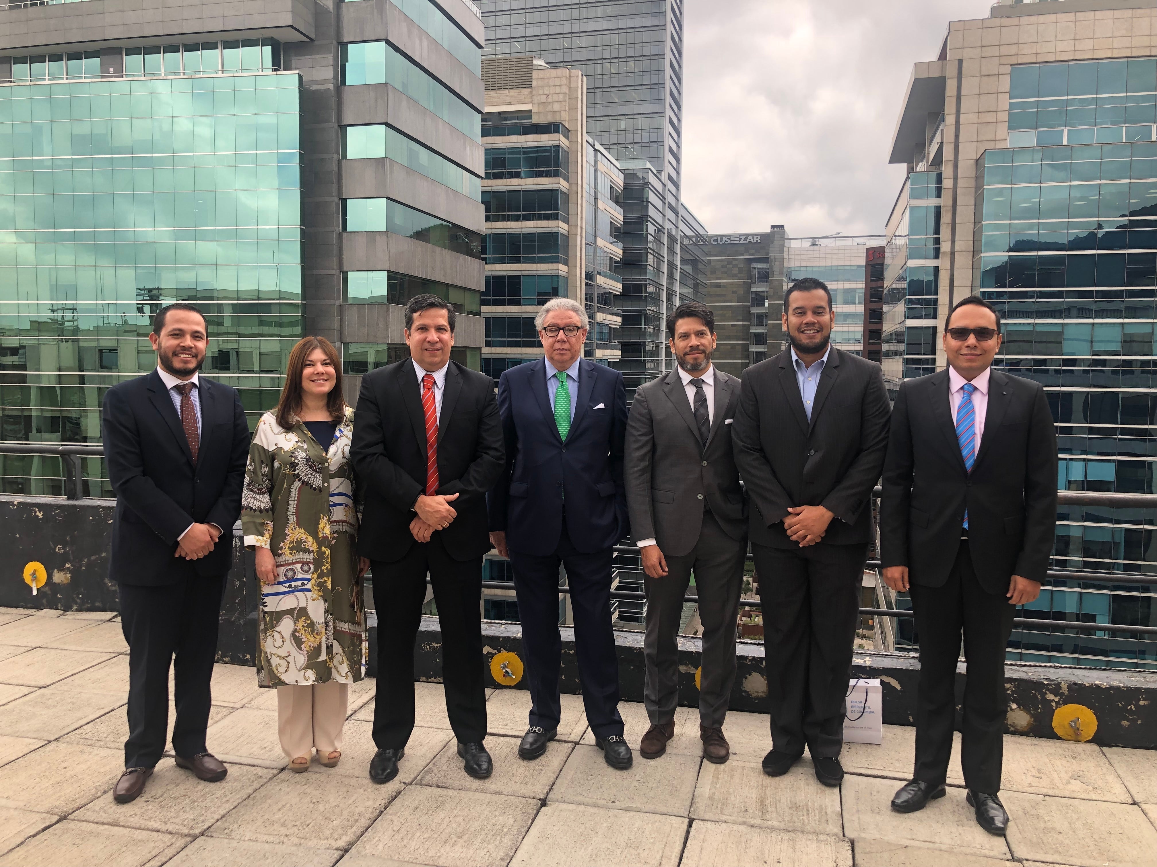 Billy Ortiz, dir. comercial de la BMC; María E. Araújo, VP comercial; Rodrigo Lara, alcalde de Neiva; Rafael Mejía, presidente BMC; Vladimir Salazar, asesor del Alcalde; Germán Barón, jefe de Alumbrado Público de Neiva; y Fernando Iglesias, director de Contratación de Neiva.