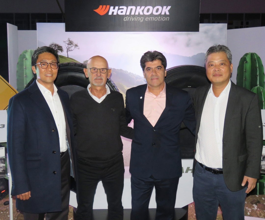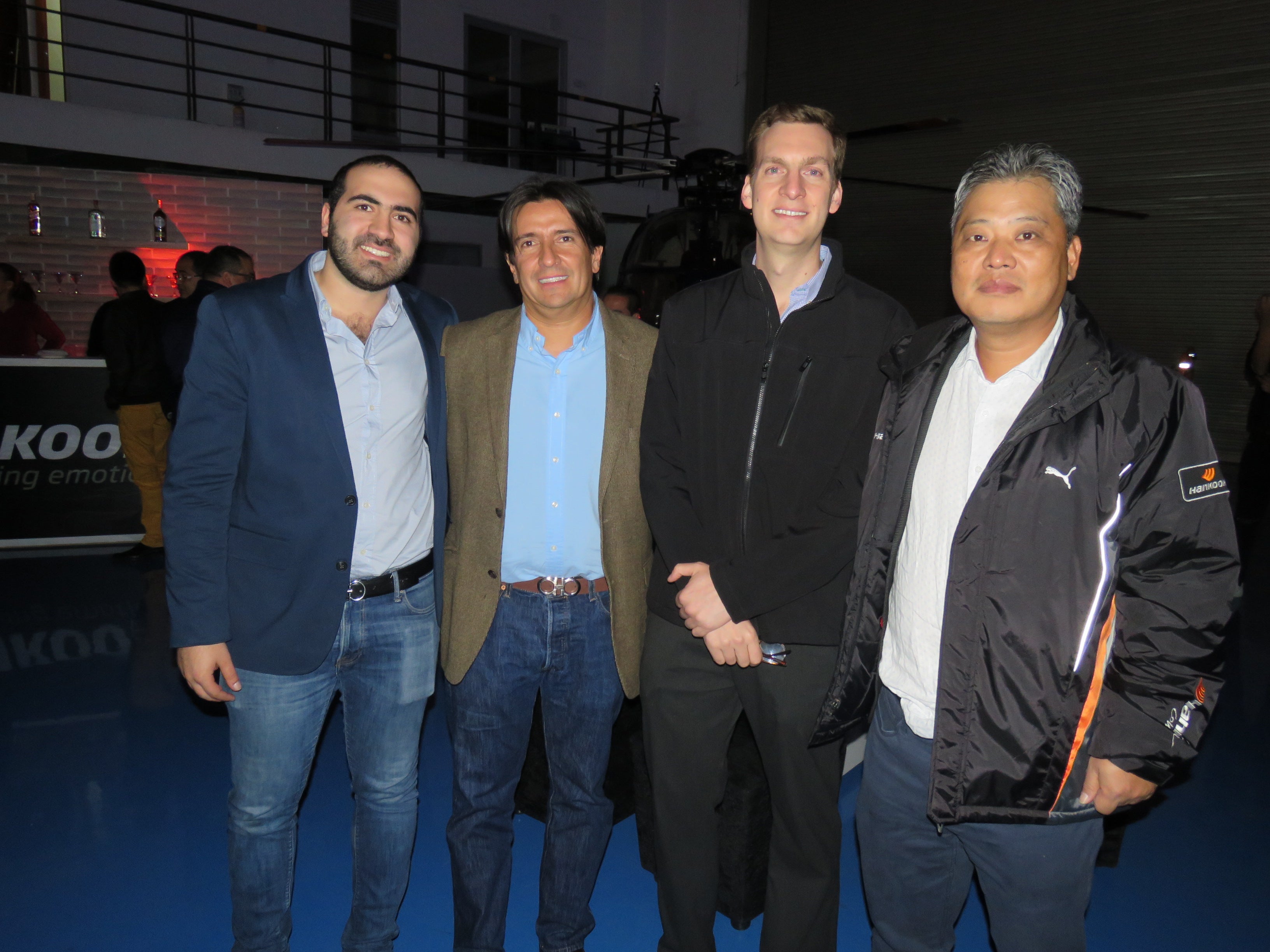 Hankook Tire Colombia convocó a sus colaboradores y directivos de la región, clientes y distribuidores nacionales en el aeropuerto de Guaymaral para el lanzamiento de su nuevo portafolio de productos para los segmentos de: automóvil, camioneta y camión que llegan al mercado colombiano y a Ecuador, Venezuela, Surinam y Guyana. En la foto: Leonardo Oh, gerente general de Hankook Colombia; León Darío Valencia, gerente general de Comercializadora Internacional de Llantas; Carlos Mario Moreno, gerente general de Coéxito; y Jeong Soo Kang, vicepresidente de Hankook Latinoamérica.