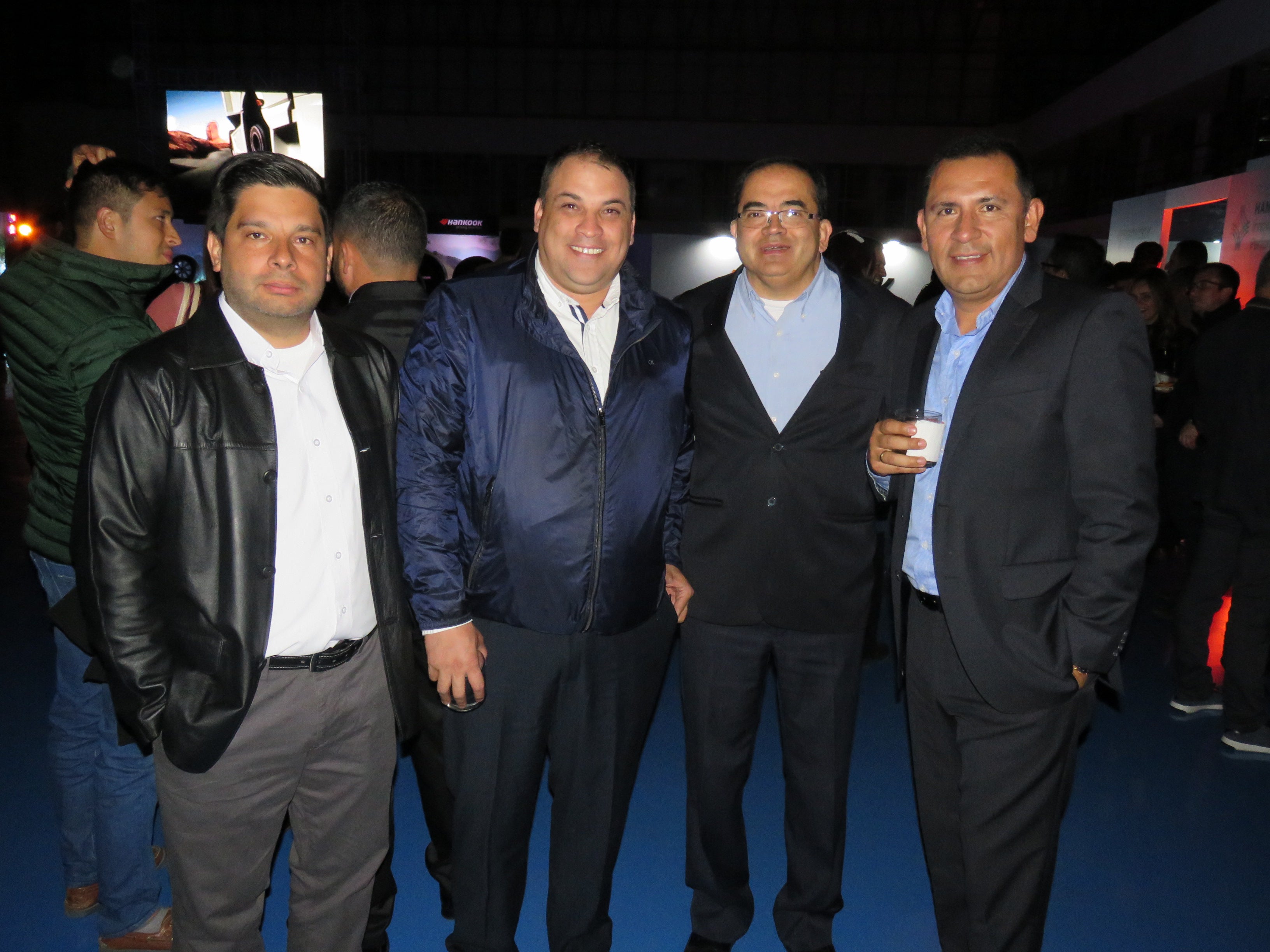 Julio Cesar Rojas, gerente técnico de Hankook Colombia; Diego Preciado, gerente comercial Alcoa Colombia; Carlos Cruz, gerente comercial de la línea de automóvil y camioneta de Hankook Colombia; y José García, gerente comercial para la línea de camión de Hankook Colombia.