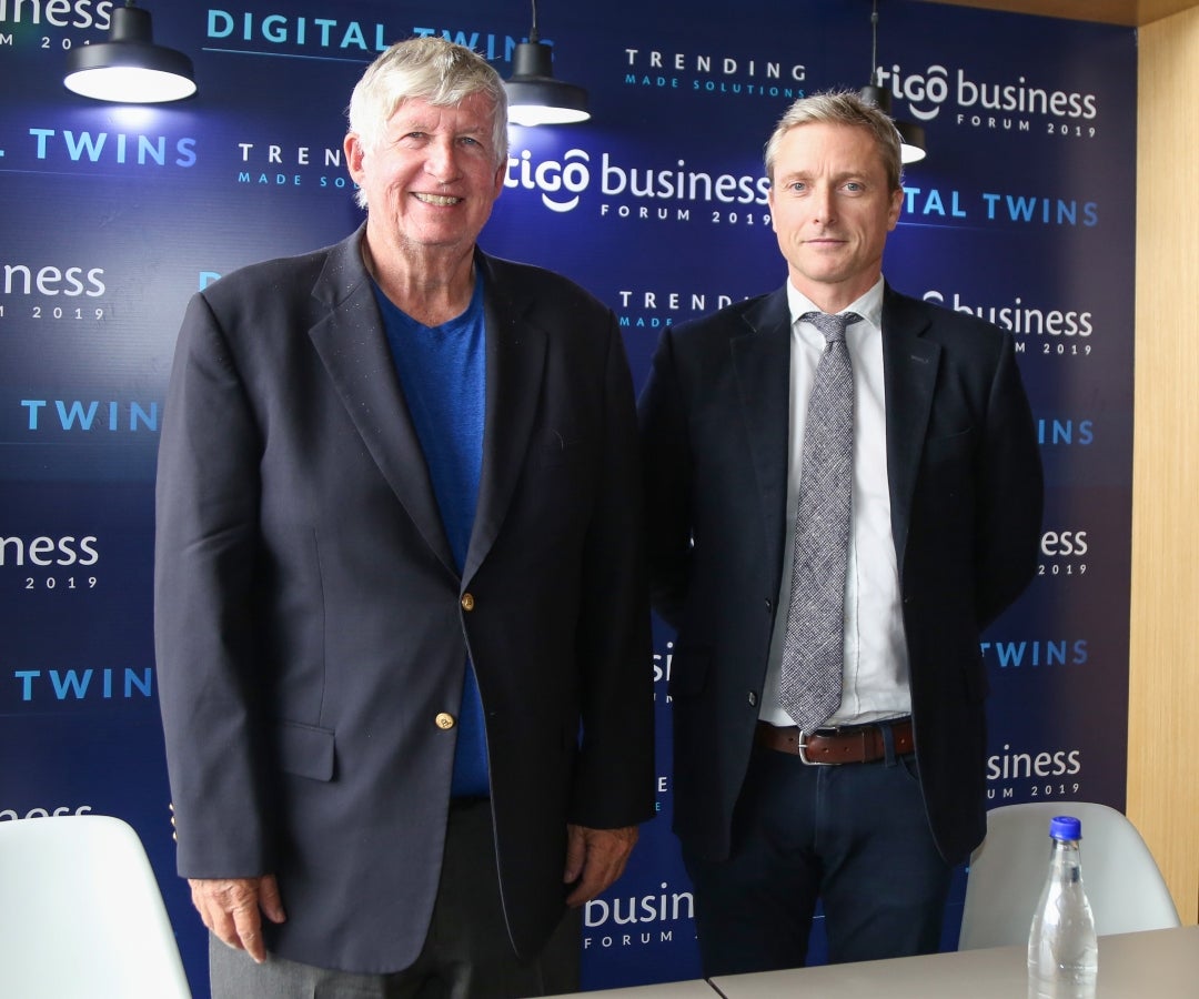 La tecnología Digital Twins, que está revolucionando industrias como la automotriz y la manufacturera en el mundo, fue el tema central del Tigo Business Forum 2019, que se realizó en Ágora Centro de Convenciones. Michael Grieves, creador del término Digital Twins y experto en transformación digital de las empresas, y Jeremy White, editor ejecutivo de la Revista Wired, estuvieron entre los invitados al evento. En la foto: Sergio Quijano, gerente del Diario La República; Marcelo Cataldo, presidente de Tigo; y Luis Carlos Vélez, director de La FM.
