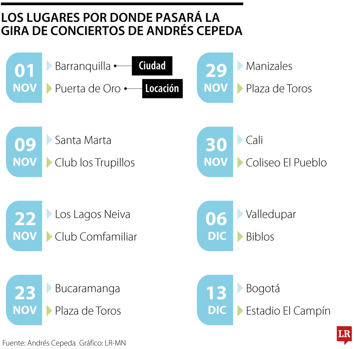 Ya hicimos la mitad de esta gira. Estuvimos en escenarios como Sincelejo, Montería, Cartagena, Ibagué, entre otros. Faltan conciertos en Bucaramanga, Valledupar, Neiva, Barranquilla, Cali, Medellín y cerraremos en Bogotá.