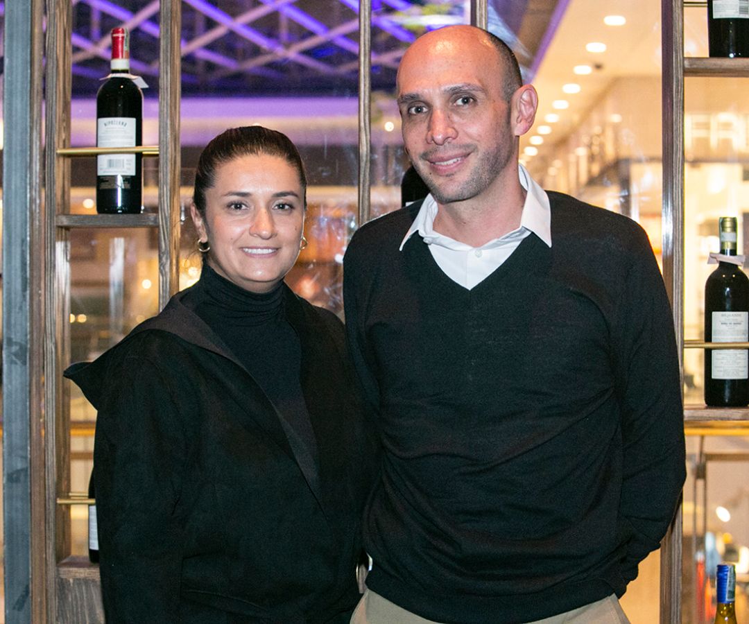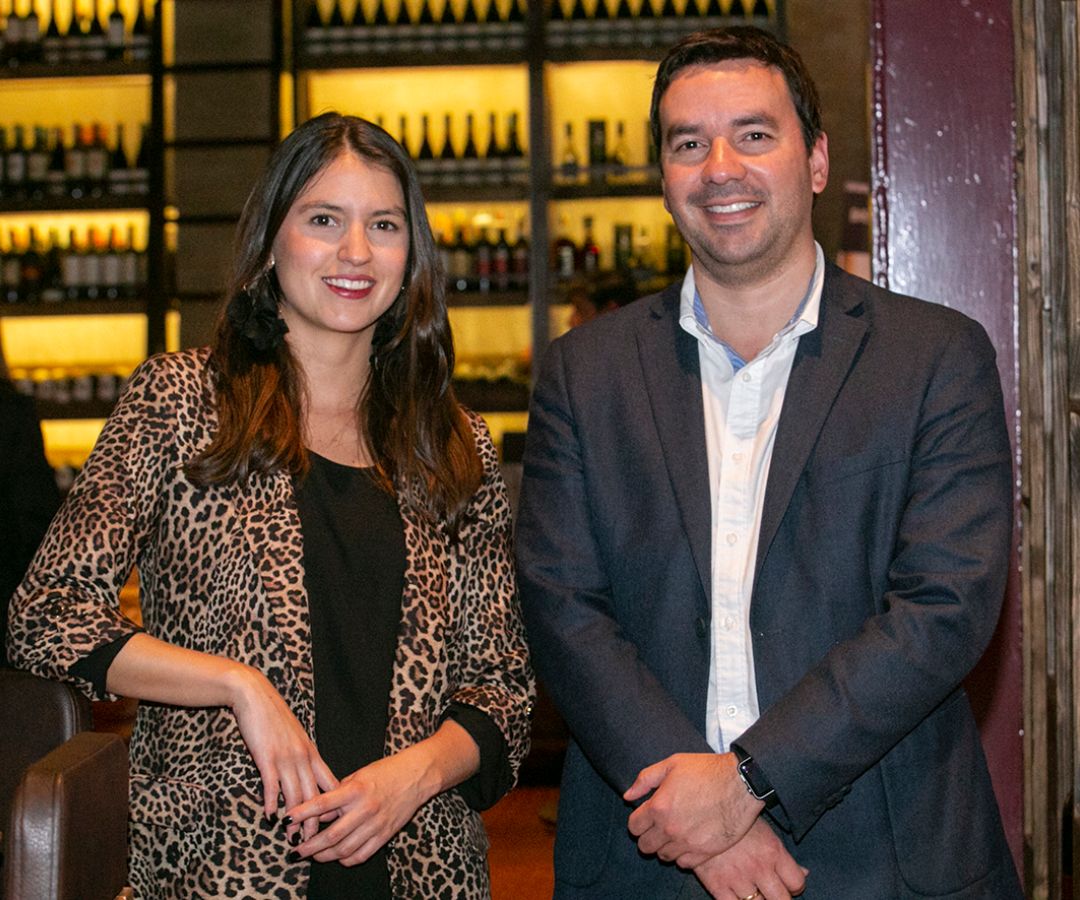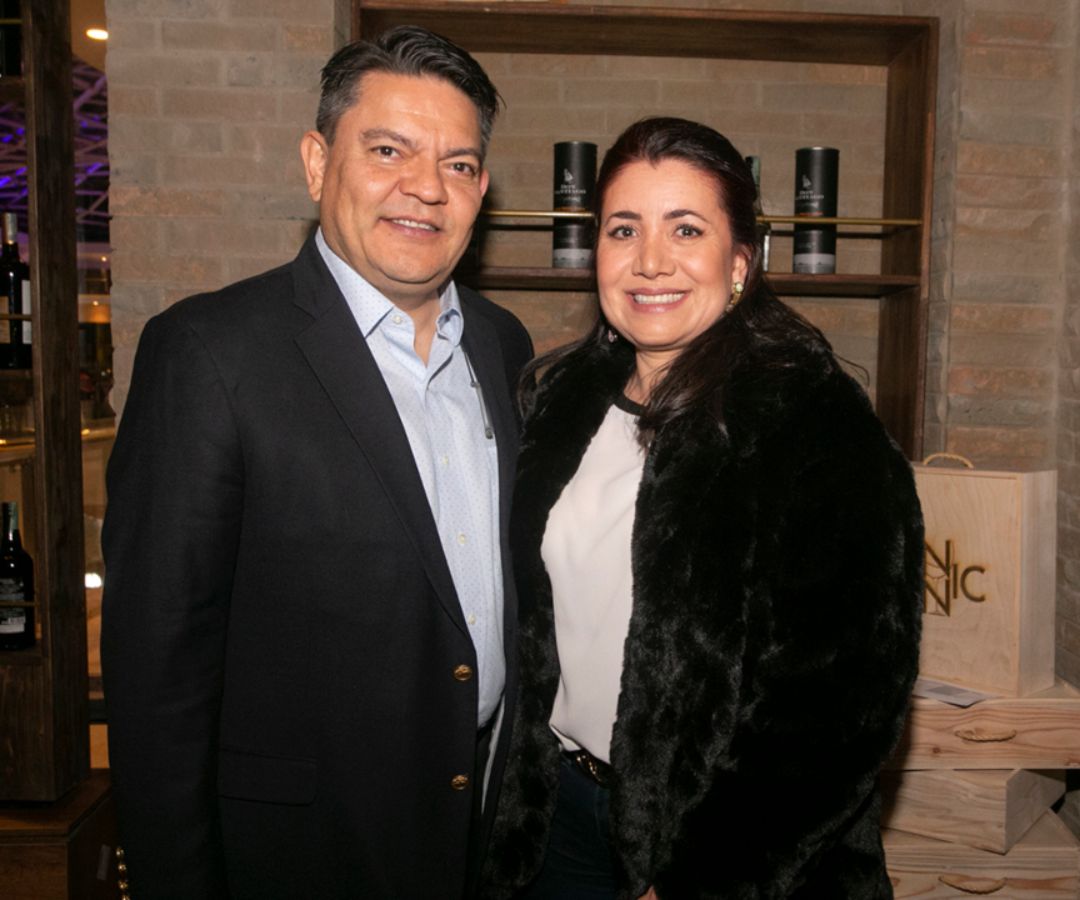 Mario Gaitán, constructor, y Adriana González, invitada al evento, llamado Wine Experience Jaguar Land Rover Pracodidacol.