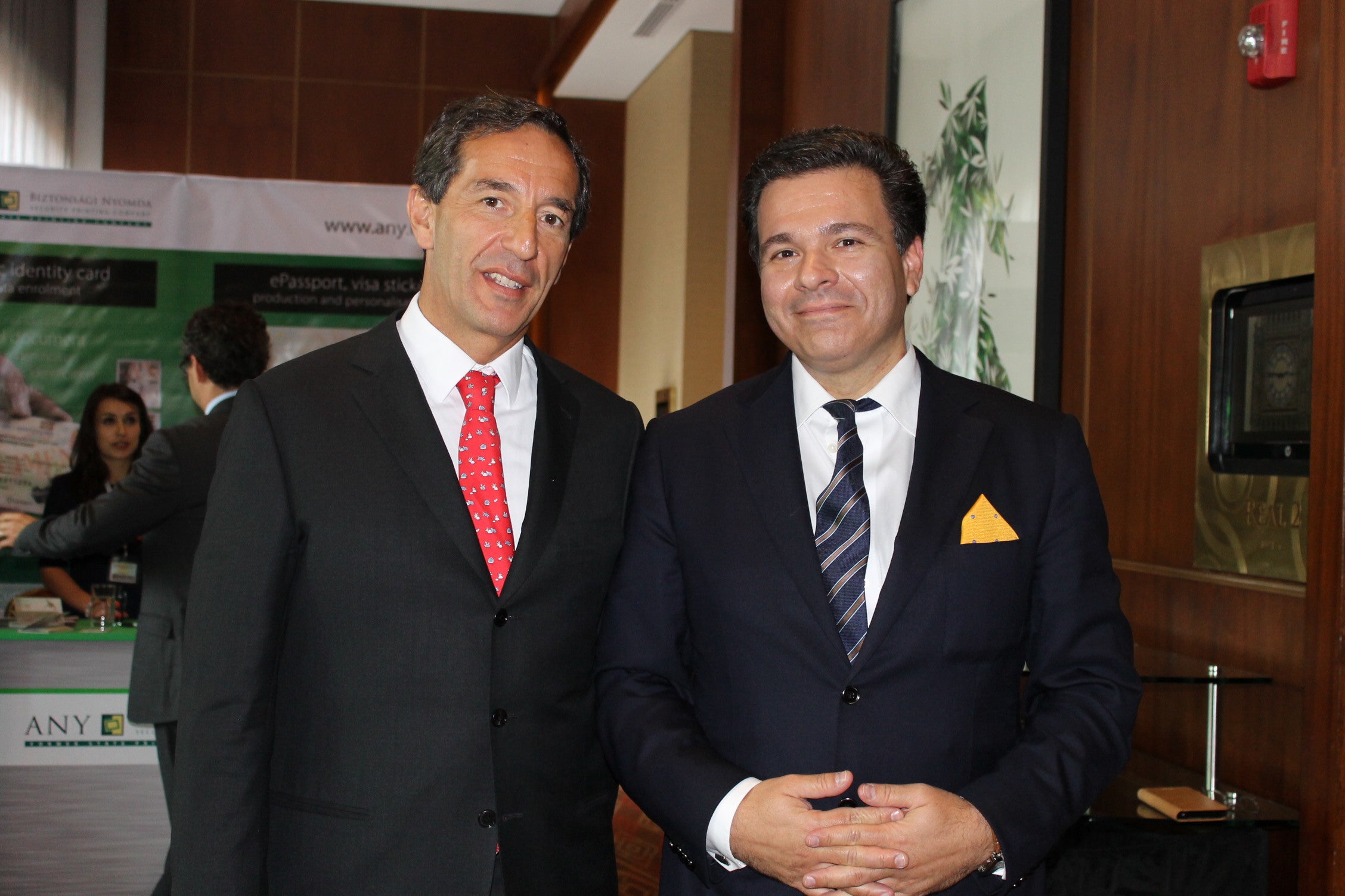 Jorge Alcobia, CEO Multicert; y Konstantin Papaxanthis, fundador y presidente honorario eID Conference, durante el evento organizado en el JW Marriott en Bogotá.