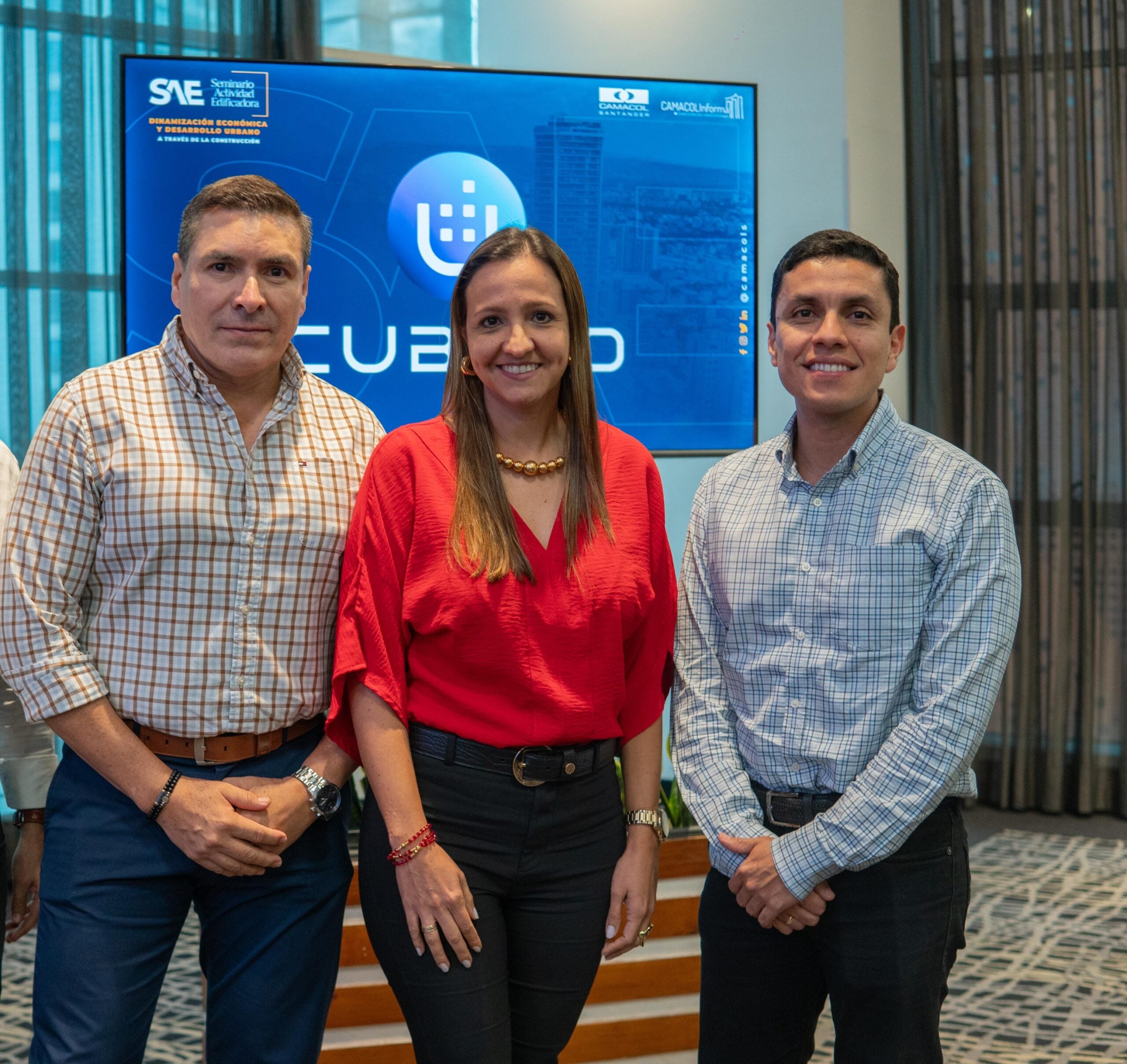 Luis Fernando Higuera, gerente general Cubyco Constructores y vicepresidente de la Junta Directiva de Camacol Santander; Gloria Franco López, directora Comercial de Negocios Alianza Fiduciaria; y Jaime Chávez, gerente Construcciones Zabdi.