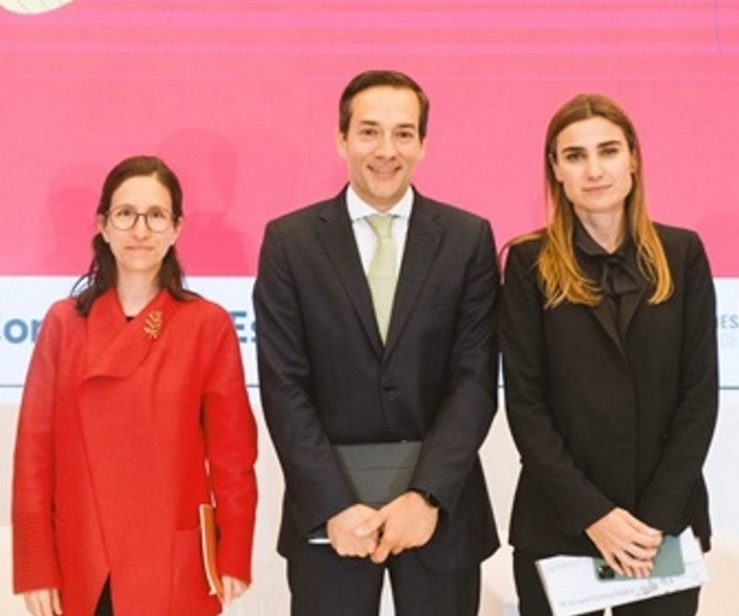 Isabel Cavelier en compañía de Julián Mora, presidente de Fiduciaria Bancolombia; y Mariana Escobar, asesora de la Superfinanciera.