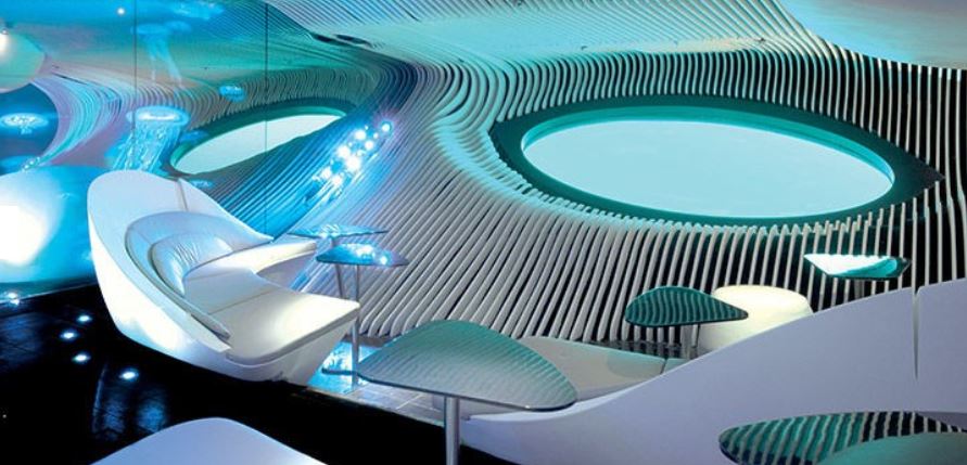El diseño también caracteriza al crucero Le Champlain, que eligió una inspiración futurista para promover el descanso en sus 184 usuarios, creando una atmósfera más íntima.