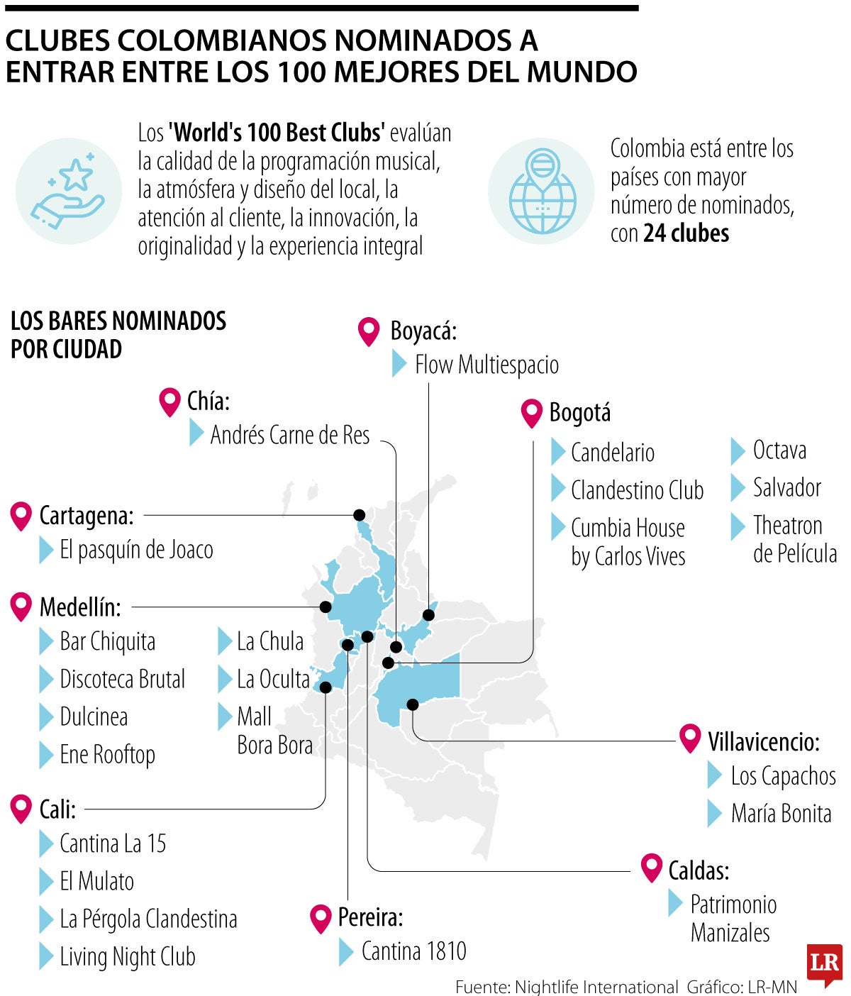 Hasta octubre, cualquier bar tendrá la oportunidad de entrar a la lista de los 100 mejores clubes del mundo a través de una votación en línea en los ‘World’s 100 Best Clubs’. Colombia está entre los países con mayor número de nominados, con 24 clubes de varias ciudades destacando por su oferta nocturna.