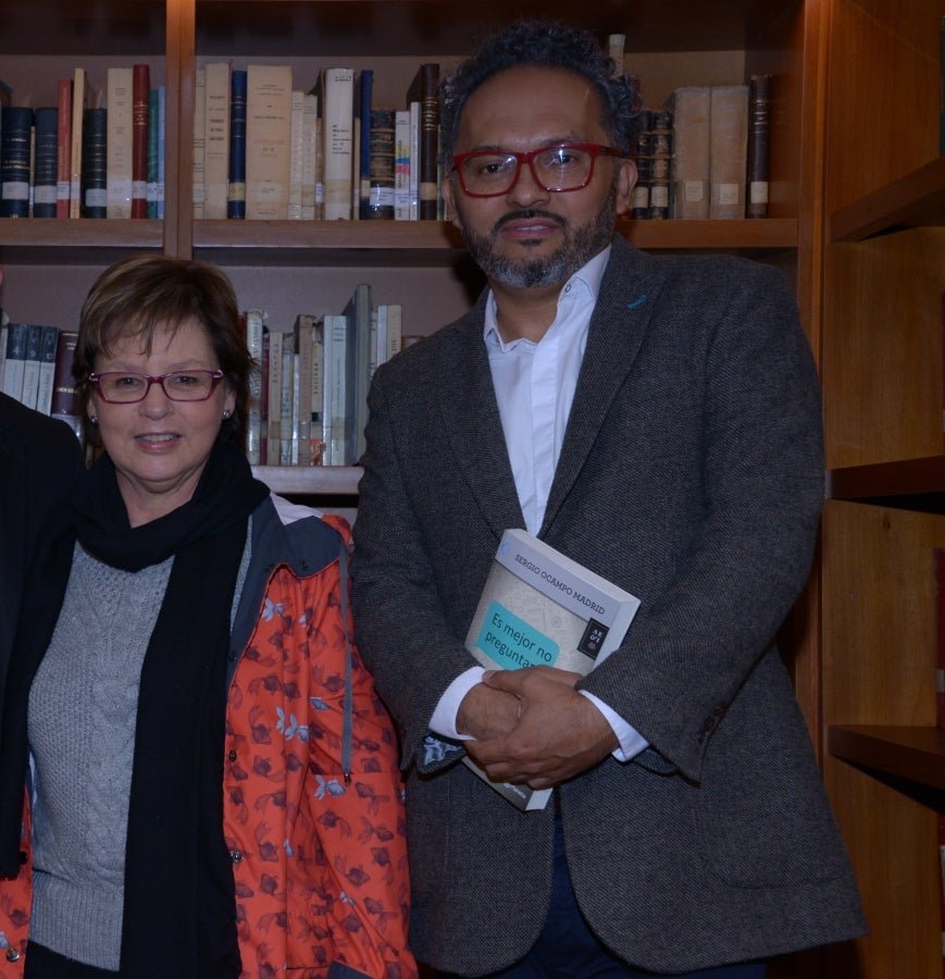El escritor, periodista y editor Sergio Ocampo Madrid presentó su tercera novela y su sexto libro publicado en Colombia. Ante periodistas, invitados y personalidades, el autor dio a conocer “Es mejor no preguntar” en el Gimnasio Moderno. Este libro aborda un tema actual, sugestivo y universal: el de los hombres y mujeres menores de 30 años que se enamoran, comunican, sientes y son mediados por la tecnología, los millennials. En la foto: Sergio Ocampo Madrid con el escritor Andrés Ospina.