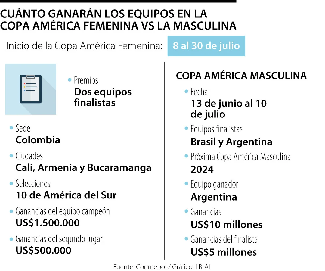 Aunque se trata de sumas importantes, las cifras son inferiores a las que entregó la Conmebol para el ganador del torneo masculino el año pasado (US$10 millones), la diferencia es de US$8,5 millones. En el caso del subcampeón, la brecha es de uS$4,5 millones,