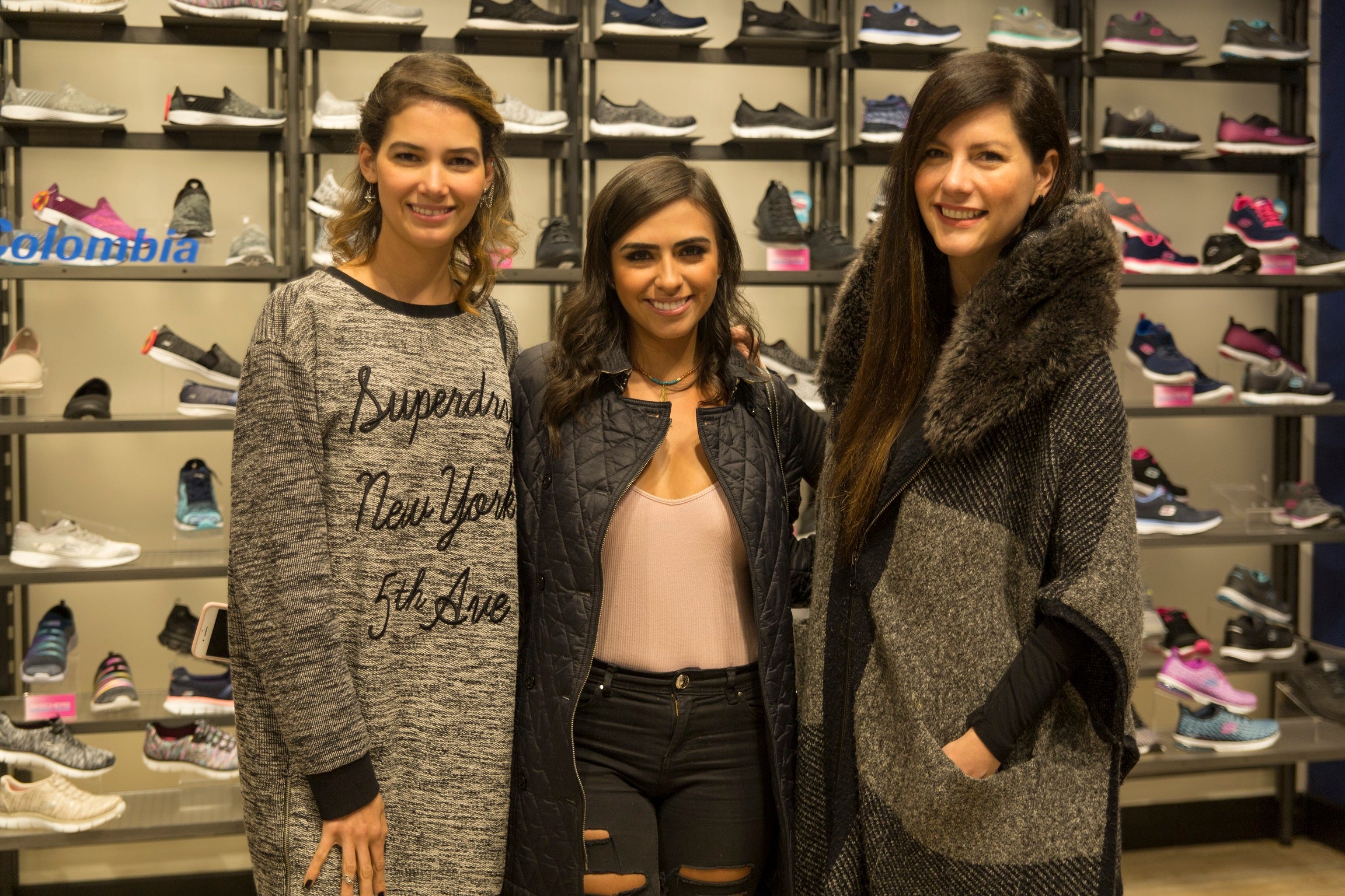 Abril Schreiber en compañía de Jessica Bohórquez y Johanna Morales durante la apertura de la tienda “Concept” de Skechers Colombia.