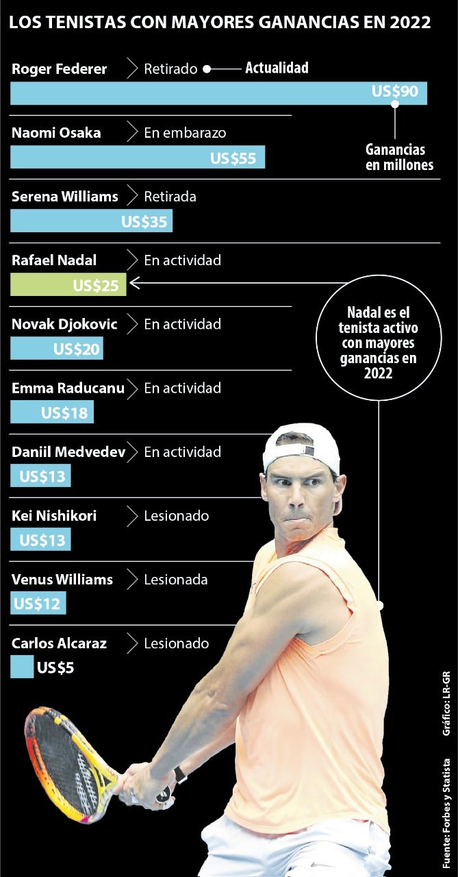 Pero, para la edición de este año del mayor torneo de Asia y Oceanía, solo participarán cuatro de los diez tenistas que mayores ingresos generaron en 2022, año en el que se retiraron Roger Federer (US$90 millones) y Serena Williams (US$35 millones), dos de los tres primeros del listado. La japonesa Naomi Osaka (US$55 millones), segunda, anunció hace unos días que está embarazada.