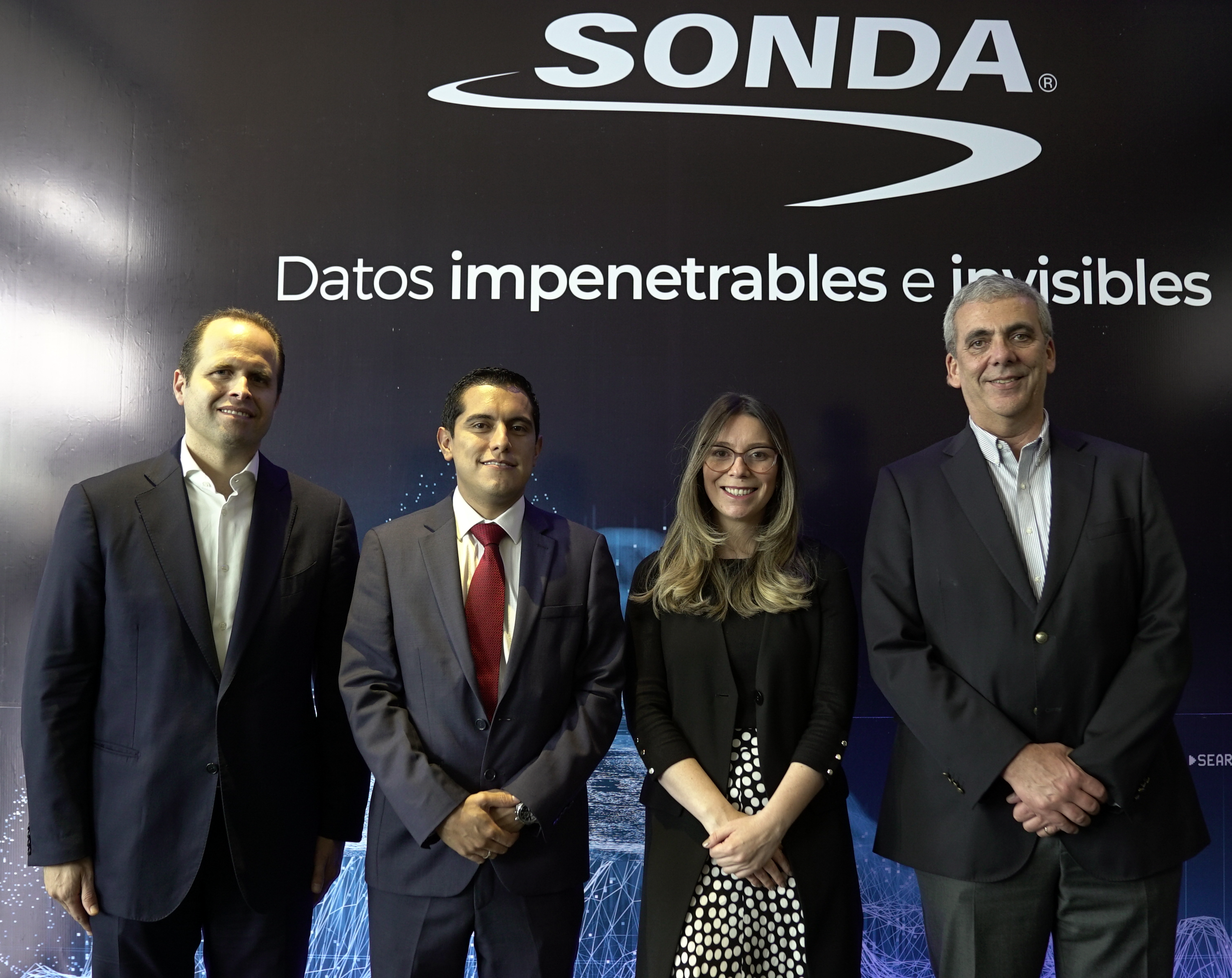 Christian Onetto, vicepresidente regional de Transformación de Sonda; Andrés Cifuentes, gerente comercial de Sonda; María Camila Giraldo, directora de Marketing de Sonda; y Amin Guenim, vicepresidente regional de servicios de Sonda.