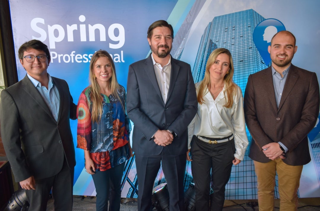 Nicolás Corredor, gerente de mercadeo y sostenibilidad de Adecco; Marcela Zapata, directora de Spring Professional Colombia y Ecuador; Demian Astorga Ramírez, client partner de Tata Consultancy Services; Juliana Echeverry, gerente de Antioquia para Spring Professional; y Jorge Macías, gerente nacional de ventas de Adecco.