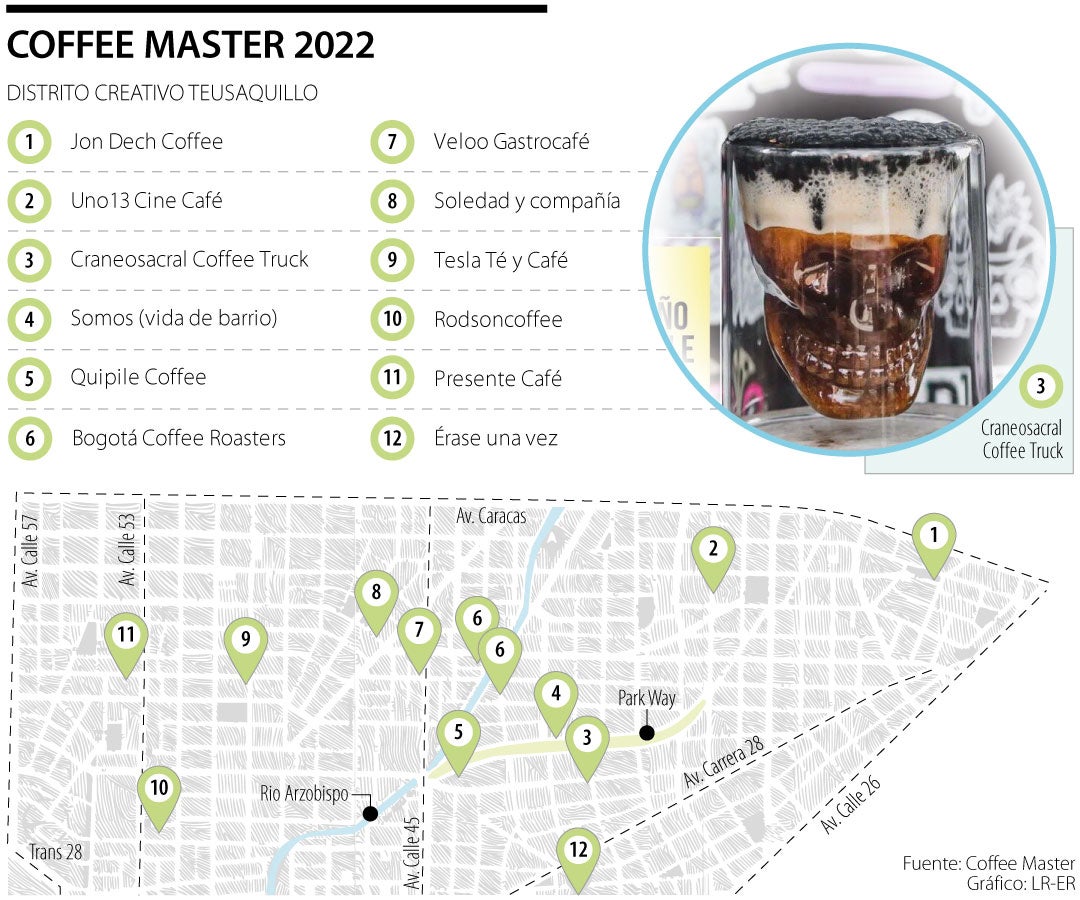 Las tiendas a participar son: Coffee Lovers, Quipile Coffee, Cofibinz, Caffa Colombia, Cafe de La Tinteria, Craneosacral, Madre Mia Arepas Con Cafe, Minka Café de especialidad, Café Mundano, Tesla Cafés y tés especiales, Rodson Coffee, Jon Dech Coffee, Café del Domo, Levels Roasted Coffee, Uno13 Cine Café, Baptista Cafe, Tropicalia Coffee Co, La Parla Workcafe, Selina Colombia, La Casa Del Cafe Artesanal, Bruma & Taza-Café Experiencia, Soledad y Compañía, Veloo - gastroCAFÉ, CatCoffee, Orígenes Cafe, Somos (vida de barrio), Erase Una Vez Café, Origen cafe & canela, Presente Café, Matuca Cafe Bar, Expresiones Café Restaurante Bar, Cafe 18 - Specialty Coffee, Bogota Coffee Roasters , Cafe Montebrujas Káva