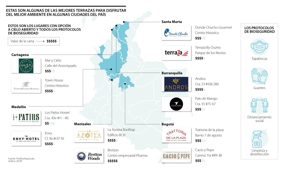 Otras ciudades también tienen opciones de terrazas bioseguras