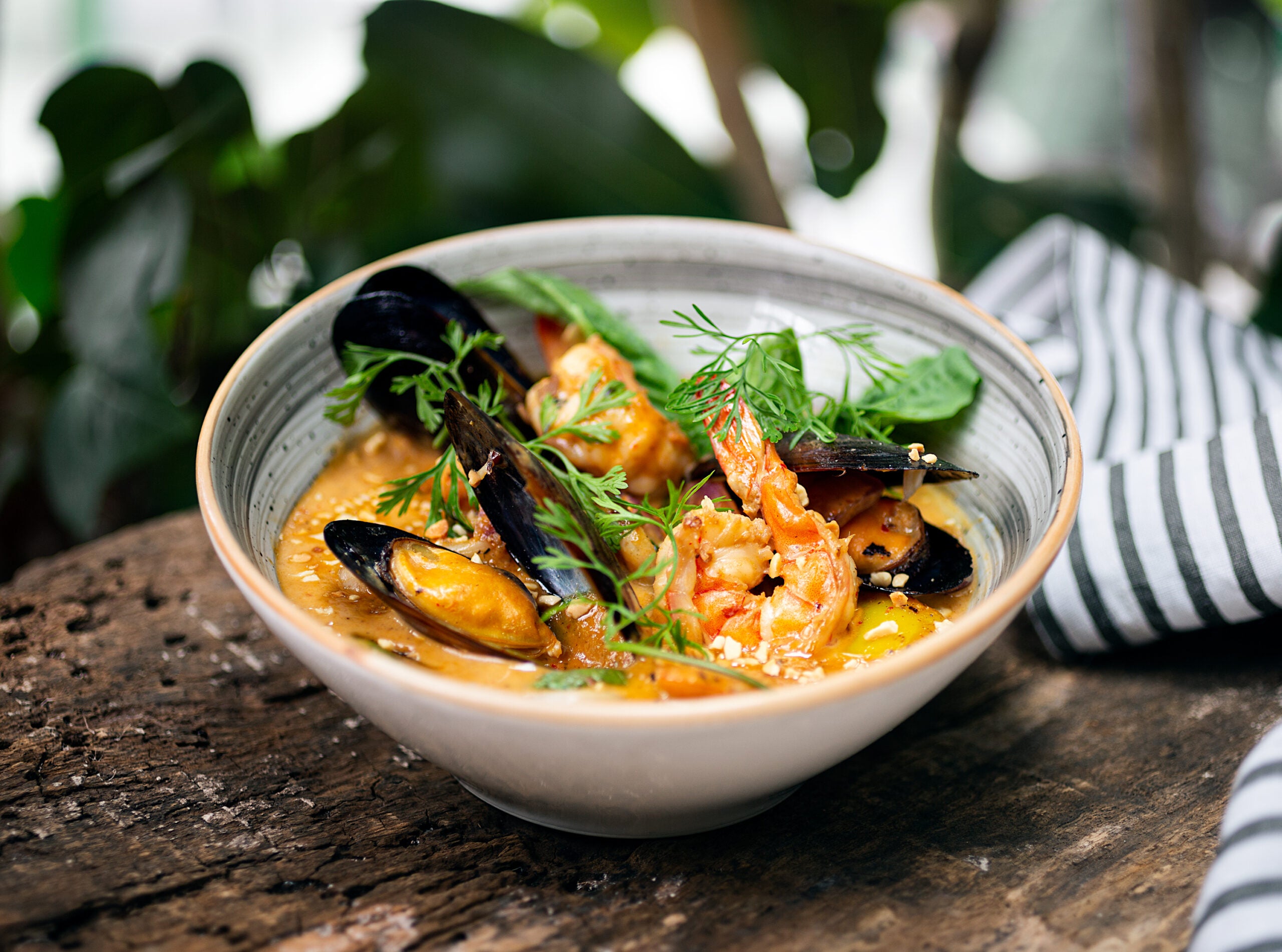 Está elaborado también a base de tamarindo, con anillos de calamar, camarón, mejillones y langostino. Acompañado de arroz jazmín, es uno de los imperdibles de este restaurante de comida asiática.