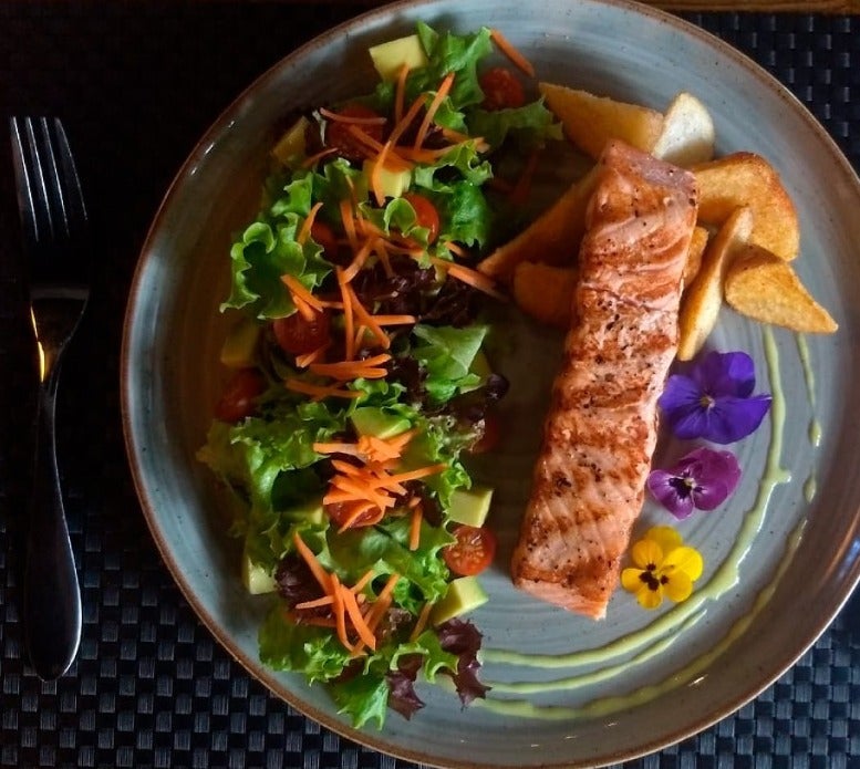 Otra opción sugerida en el restaurante es el salmón a la parrilla, acompañado de ensalada y papas de la casa. También puede pedir un lomo Valdez, que viene con medallones bañados en salsa agridulce de café y papas a las finas hierbas.