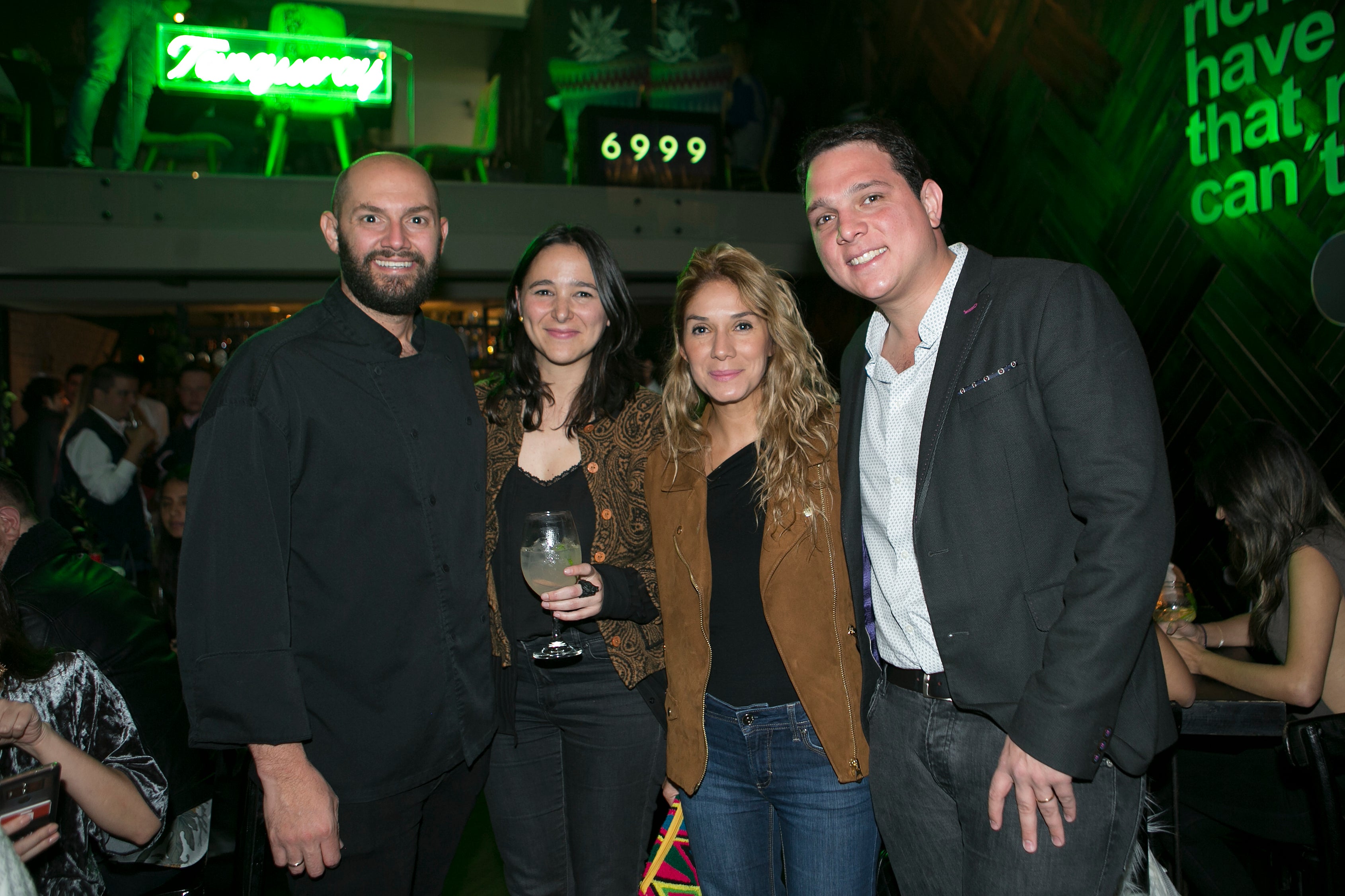 El chef Nicolás de Zubiría; en compañía de Julia Londoño, gerente de Relaciones Públicas del Portafolio Reserve de Diageo; Gladys Sedano, gerente de marca de Tanqueray; y Sergio Fernández de Castro.