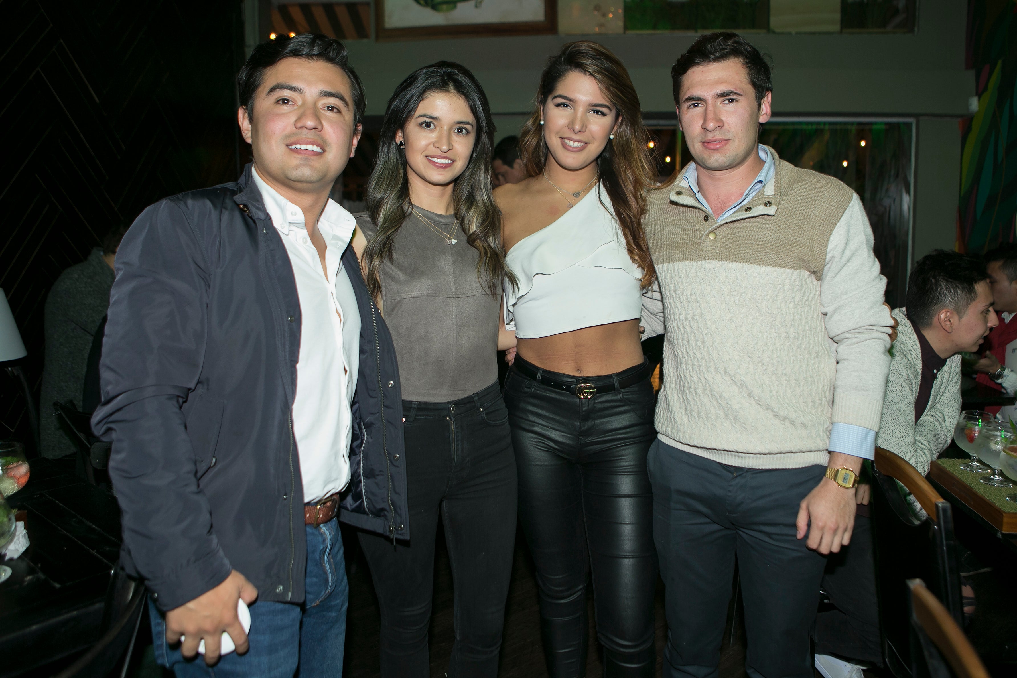 Juan Severiche, cliente que recibió el coctel número 6.999 en el primer pop-up bar del país llamado Tanqueray 6999; en compañía de Daniela Gutiérrez, Laura Paulo y Rubén Carvajal.