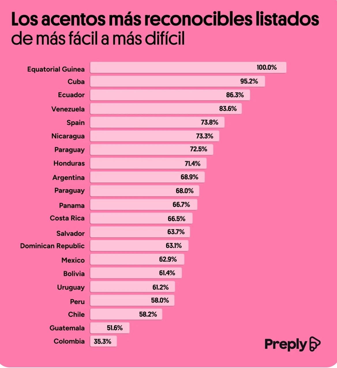 En el marco del Día del Idioma Español, la plataforma Preply presentó un juego interactivo que mide qué tan fácil o difícil es identificar distintos acentos hispanohablantes