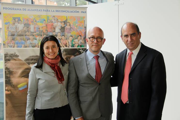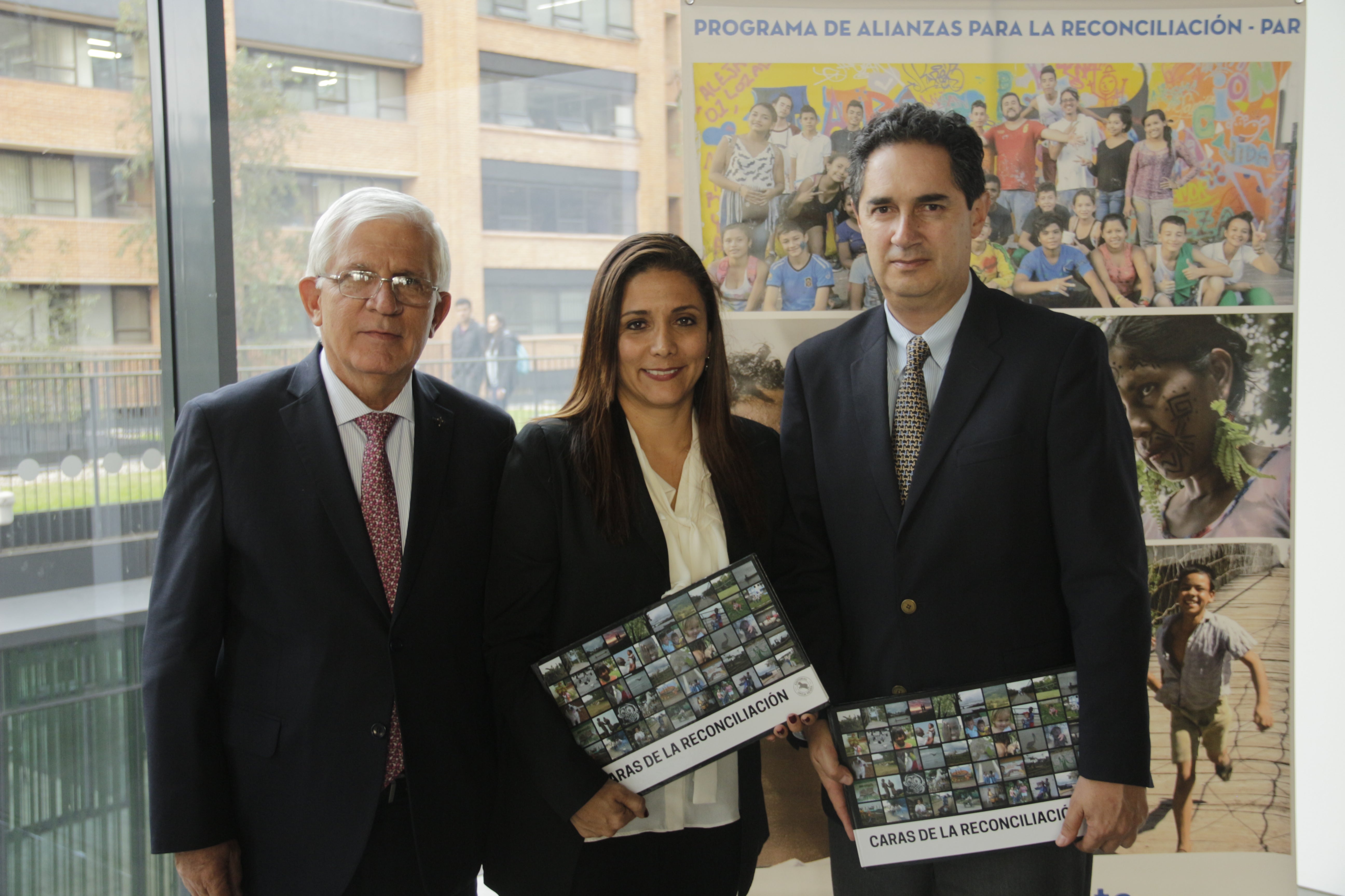 Padre Jorge Humberto Peláez, rector de la Universidad Javeriana; Patricia Hunter, subdirectora de reconciliación e inclusión Usaid y Ricardo Amaya, director de Acdi/Voca.