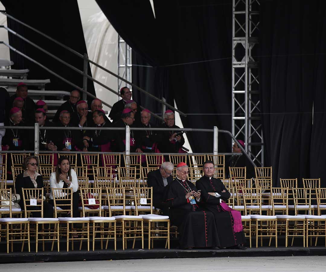 A su llegada a la capital del país, el Nuncio Apostólico en Colombia, Monseñor Ettore Balestrero y el Jefe de Protocolo, subirán a la aeronave para invitar al Papa a descender.