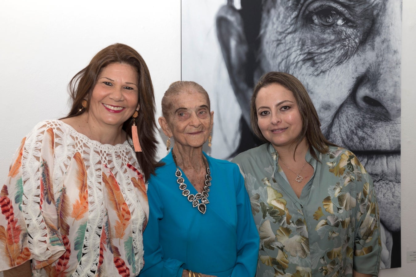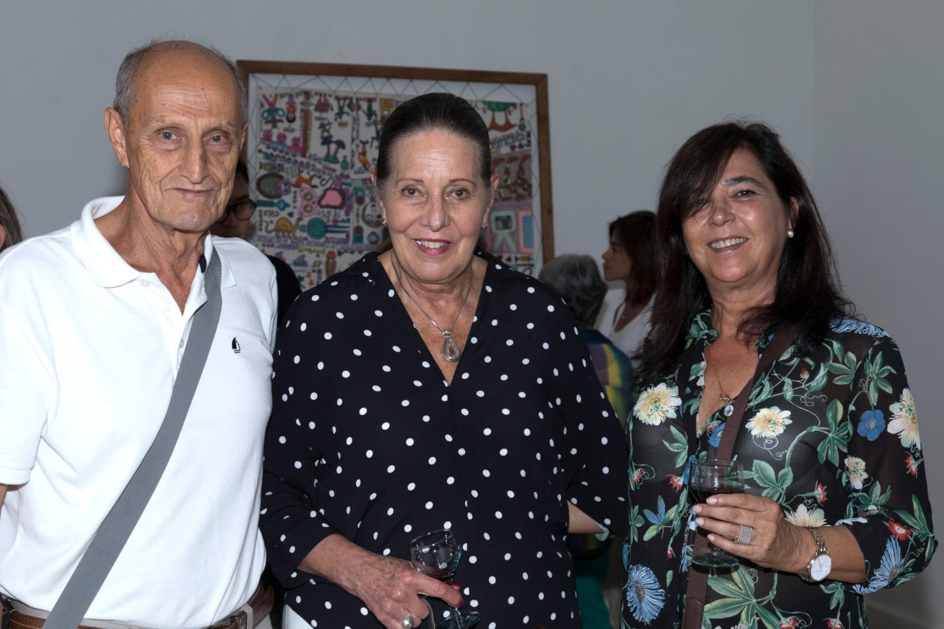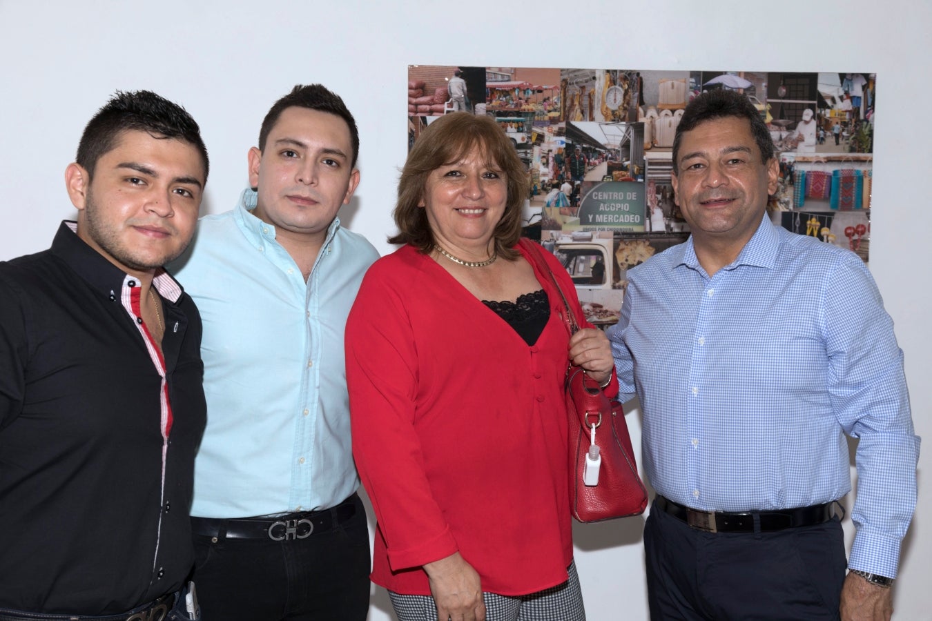 En el grupo de visitantes a la exposición estaban Juan David Rojas Soler, gerente logístico de Discob; Andrés Felipe Rojas Soler; de la misma empresa y Elcy Carrasco Hernández, curadora.