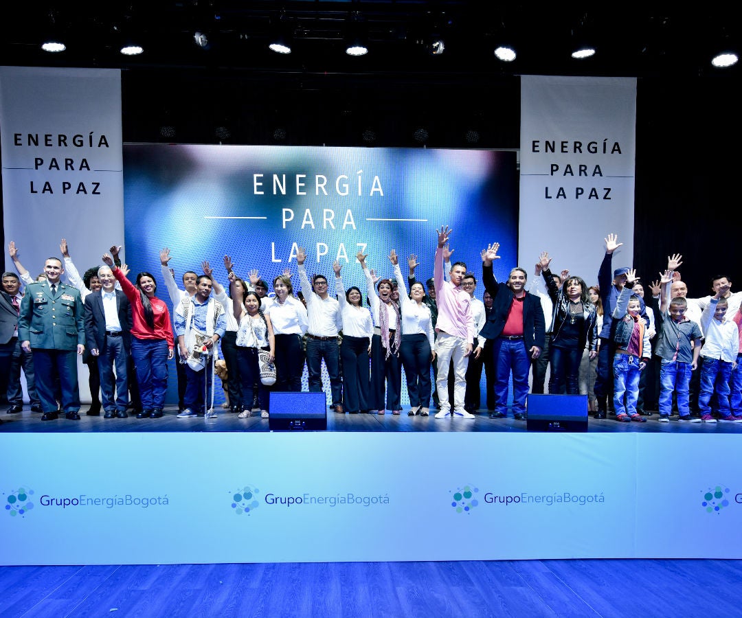 El Grupo Energía Bogotá (GEB) en presencia del presidente de la Comisión de la Verdad, alcaldes y representantes de municipios de Tolima, Huila y Valle, y miembros del Ejército Nacional, anunció el programa Energía para la Paz el cual busca llevar progreso a zonas de estos departamentos afectados históricamente por el conflicto armado. En el evento estuvo, Astrid ÁLvarez, presidenta del GEB en compañía del miembros de soldados del Equipo de Explosivos y Demoliciones del Ejército.