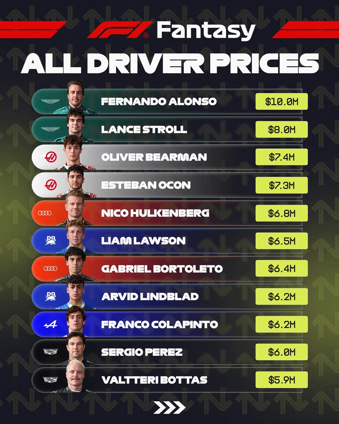 En la zona media del mercado, donde muchos managers suelen encontrar equilibrio estratégico, aparecen Isack Hadjar con 15.1 millones, Pierre Gasly con US$12.0 millones, Carlos Sainz con US$11.8 millones y Alex Albon con US$11.6 millones. Más abajo, las opciones económicas incluyen a Fernando Alonso US$10 millones , Lance Stroll US$8 millones, Oliver Bearman US$7.4 millones, Esteban Ocon US$7.3 millones y Nico Hülkenberg US$6.8 millones. La diferencia entre el piloto más caro y el más barato es de US$21.8 millones, un margen que obliga a planificar con precisión cada movimiento.