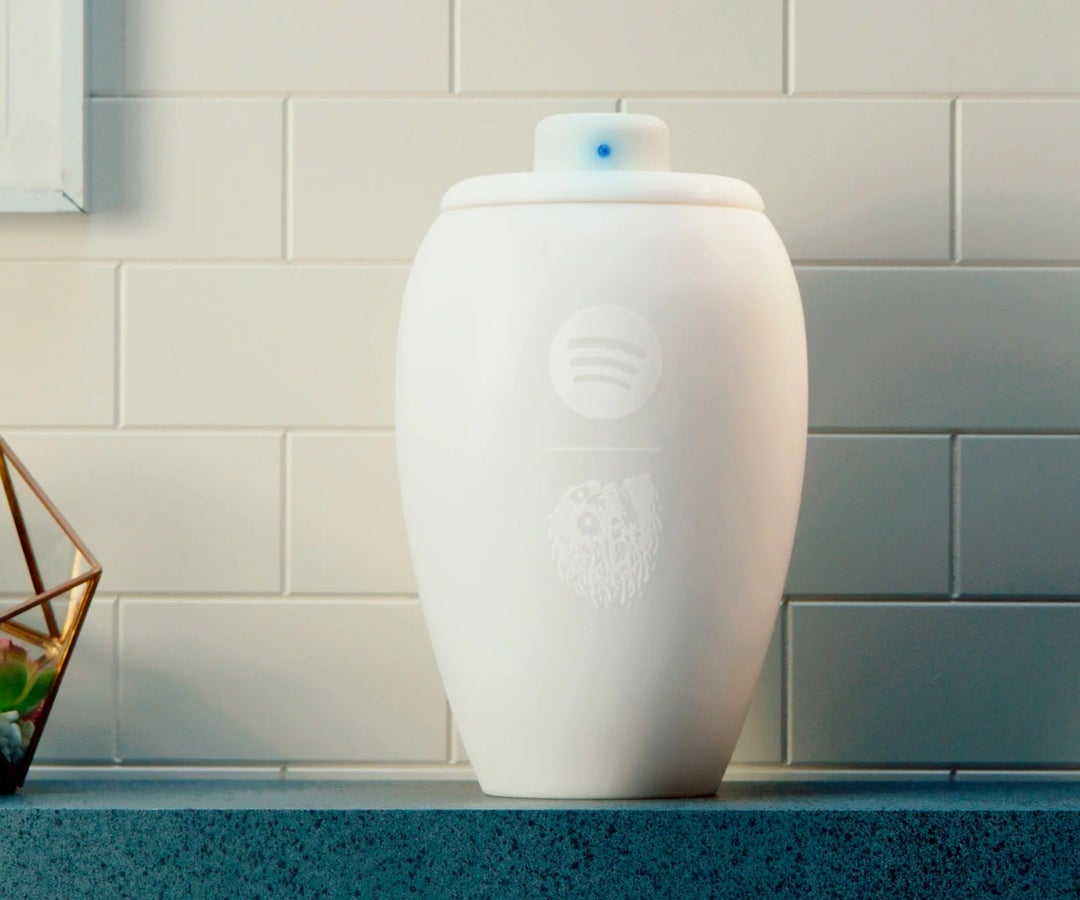 La “Eternal Playlist Urn”, de edición limitada y disponible solo en EE. UU., incorpora un altavoz bluetooth y se complementa con un generador digital de listas póstumas en Spotify.