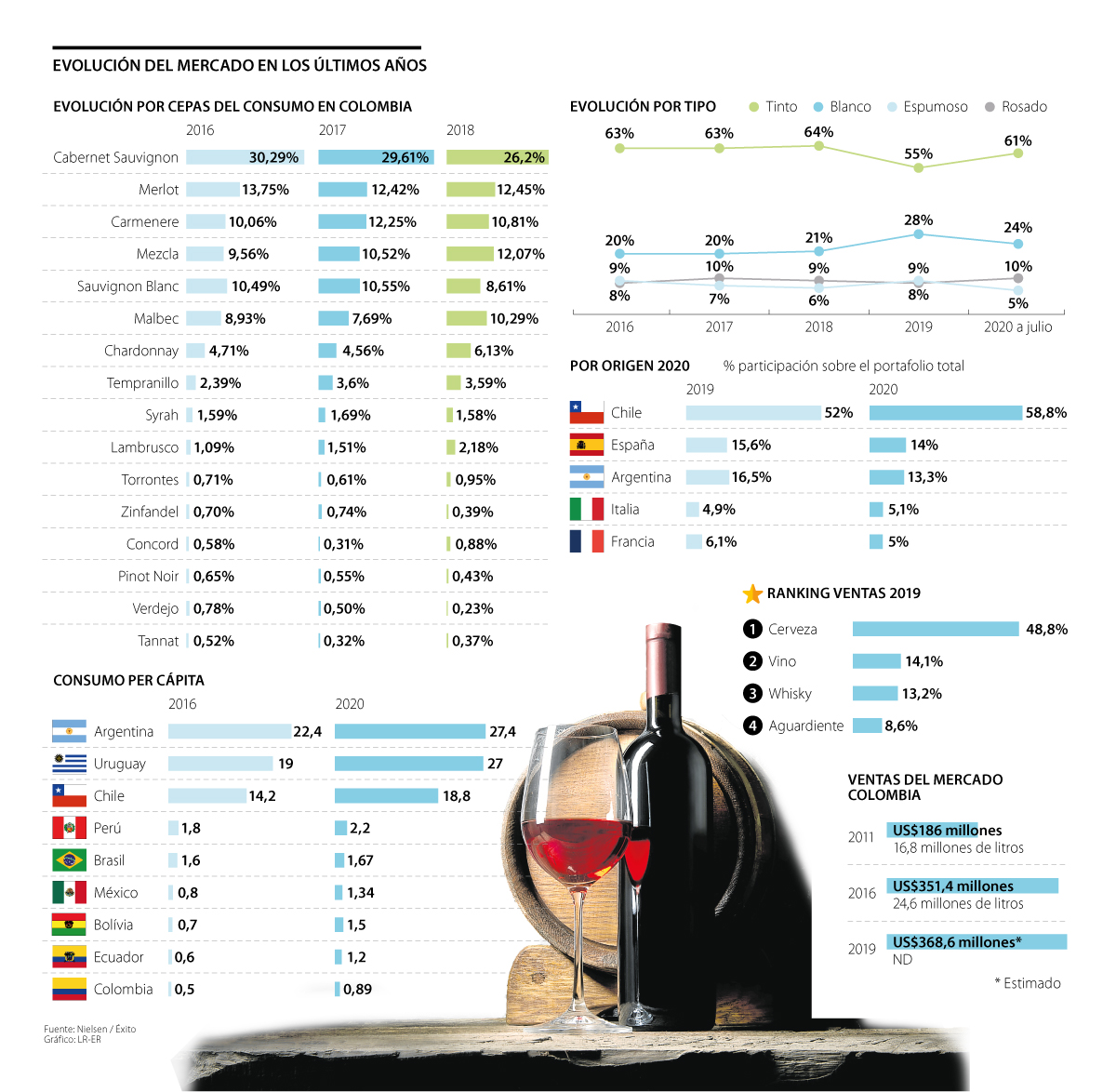 Para los expertos, esto se da porque la gente cuando empieza a probar más vino, también comienza a buscar más opciones; más en este año cuando en medio del confinamiento los colombianos compraron más botellas.