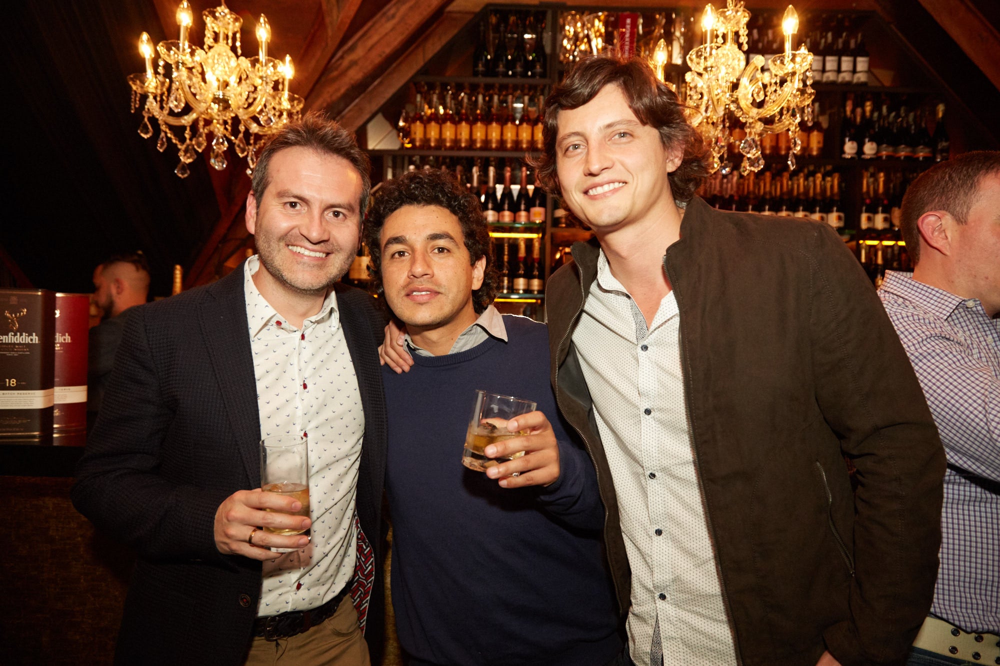 Eduardo Ortegón, Juan Pablo Barraneche y Juan Carlos Sarmiento disfrutaron del encuentro organizado por la marca Single Malt en la capital del país.