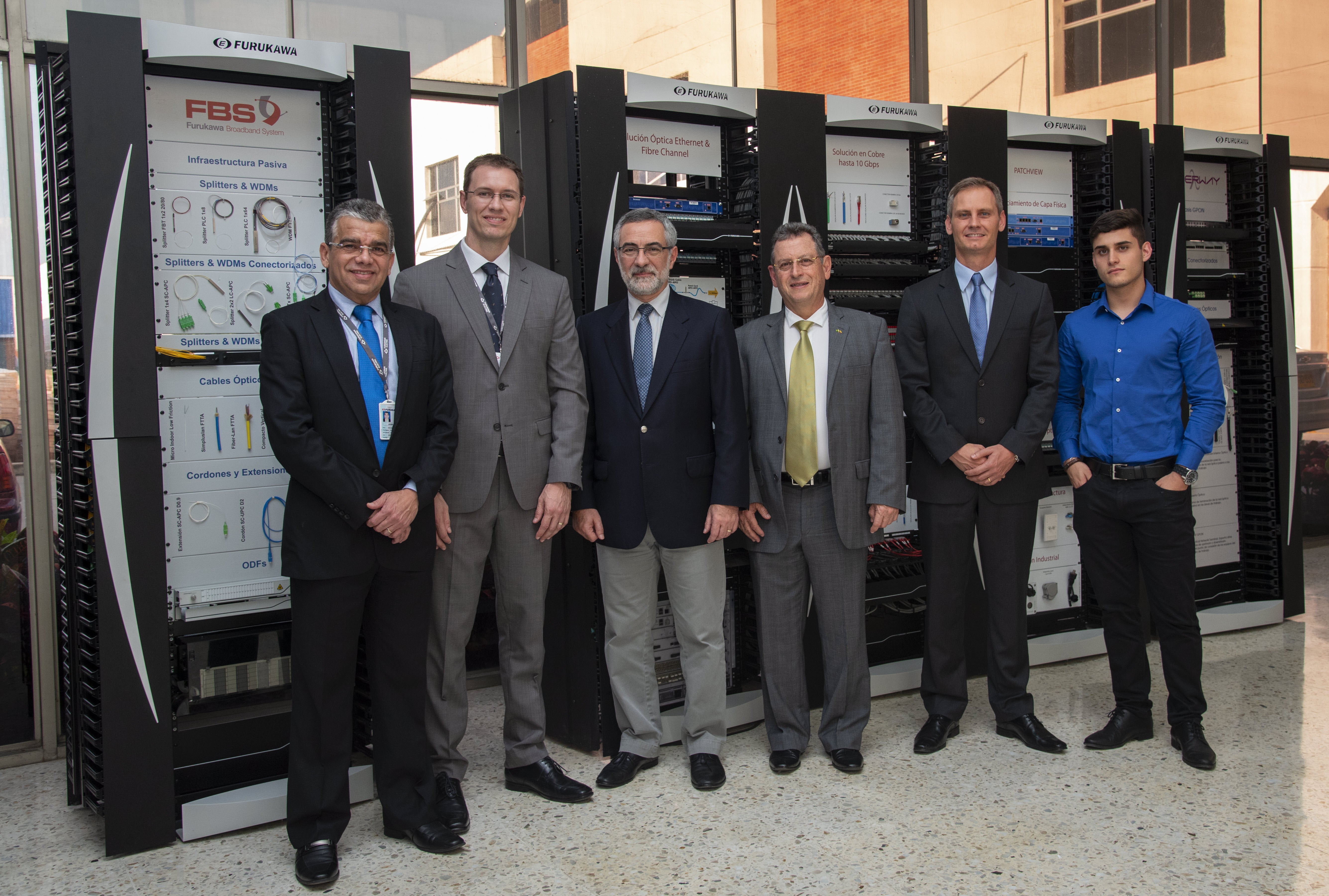 Javier Bedoya, gerente comercial de Mercado Andino en Furukawa Electric; Evandro Machado, gerente de producción Planta de Palmira en Furukawa Electric: Julio Glinternick Bitelli, embajador de Brasil; Carlos Fernando Lizarazo, cónsul honorario en Cali; Amauri Mondini, gerente de logística Planta de Palmira en Furukawa Electric; y Sebastián Lizarazo.