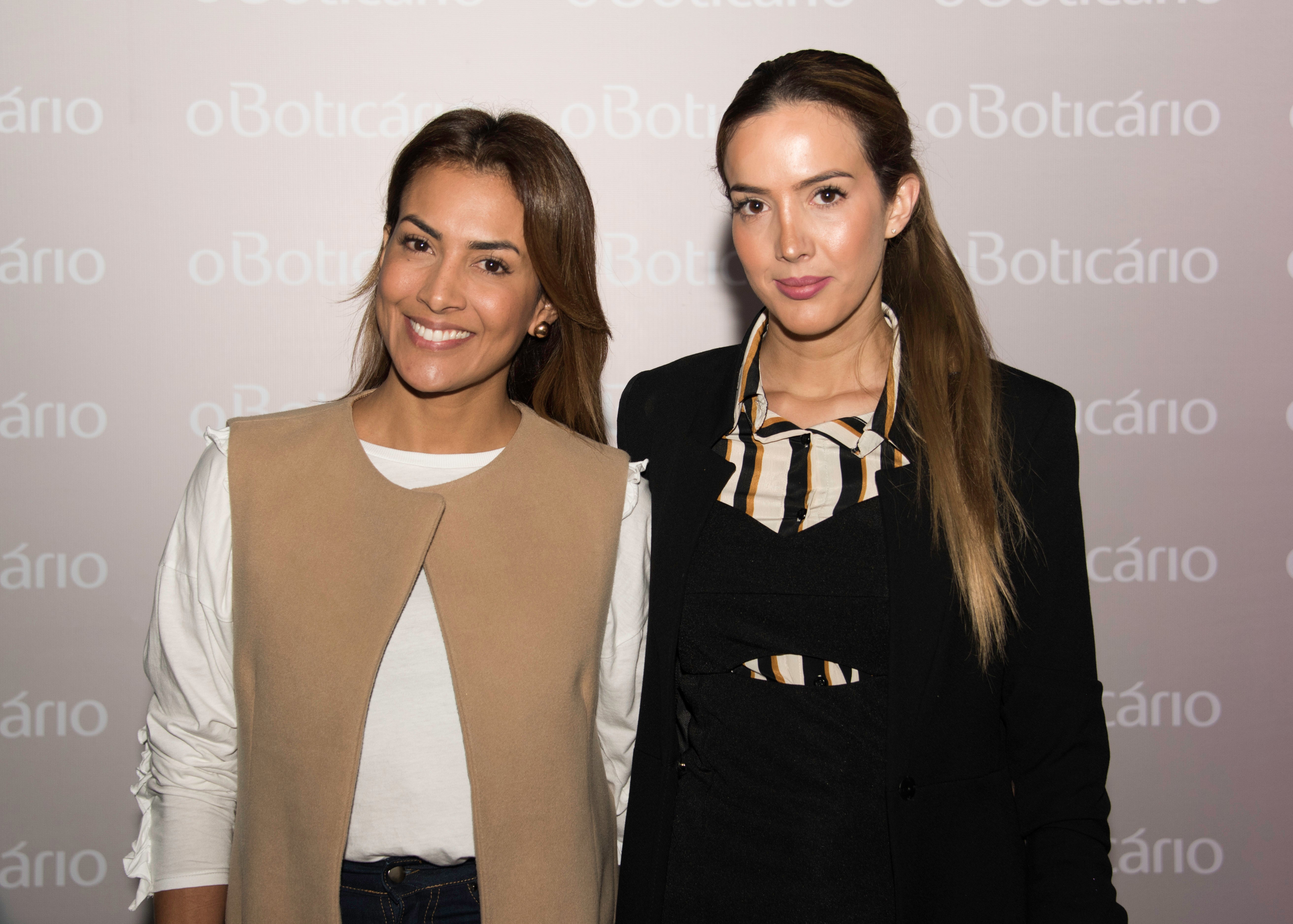 Johana Moreno, presentadora en el canal WinSports; y Violeta Berngonzoli, durante la visita del brasilero Sadi Consati, maquillador de la firma cosmética oBoticário.