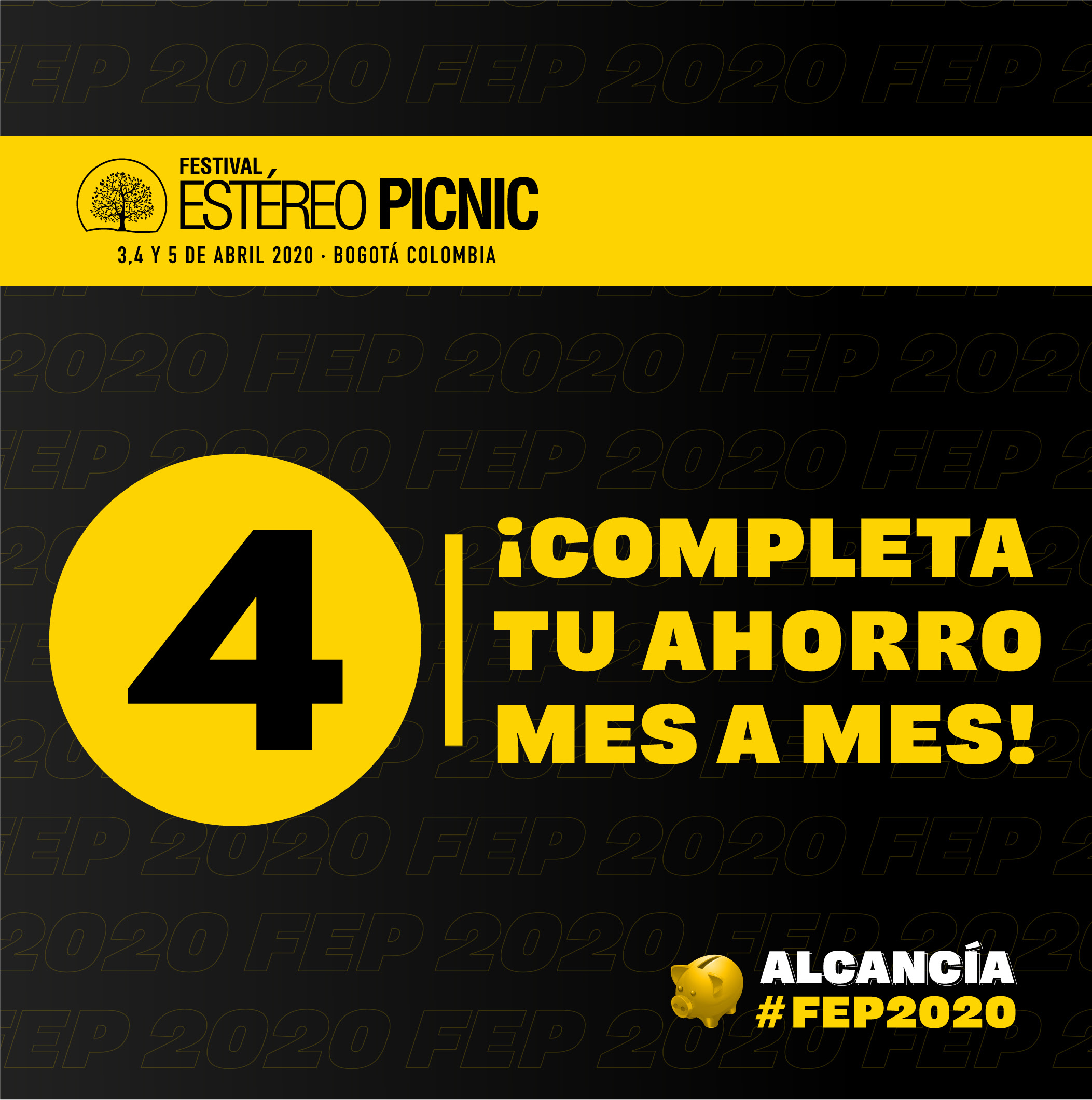 Para celebrar la undécima versión del Festival Estéreo Picnic, que se realizará 3, 4 y 5 de abril de 2020 en Bogotá , ya se encuentra habilitadas las Alcancías FEP, el plan de pago por cuotas para que los amantes de la música asistan a este evento.