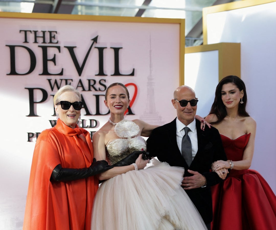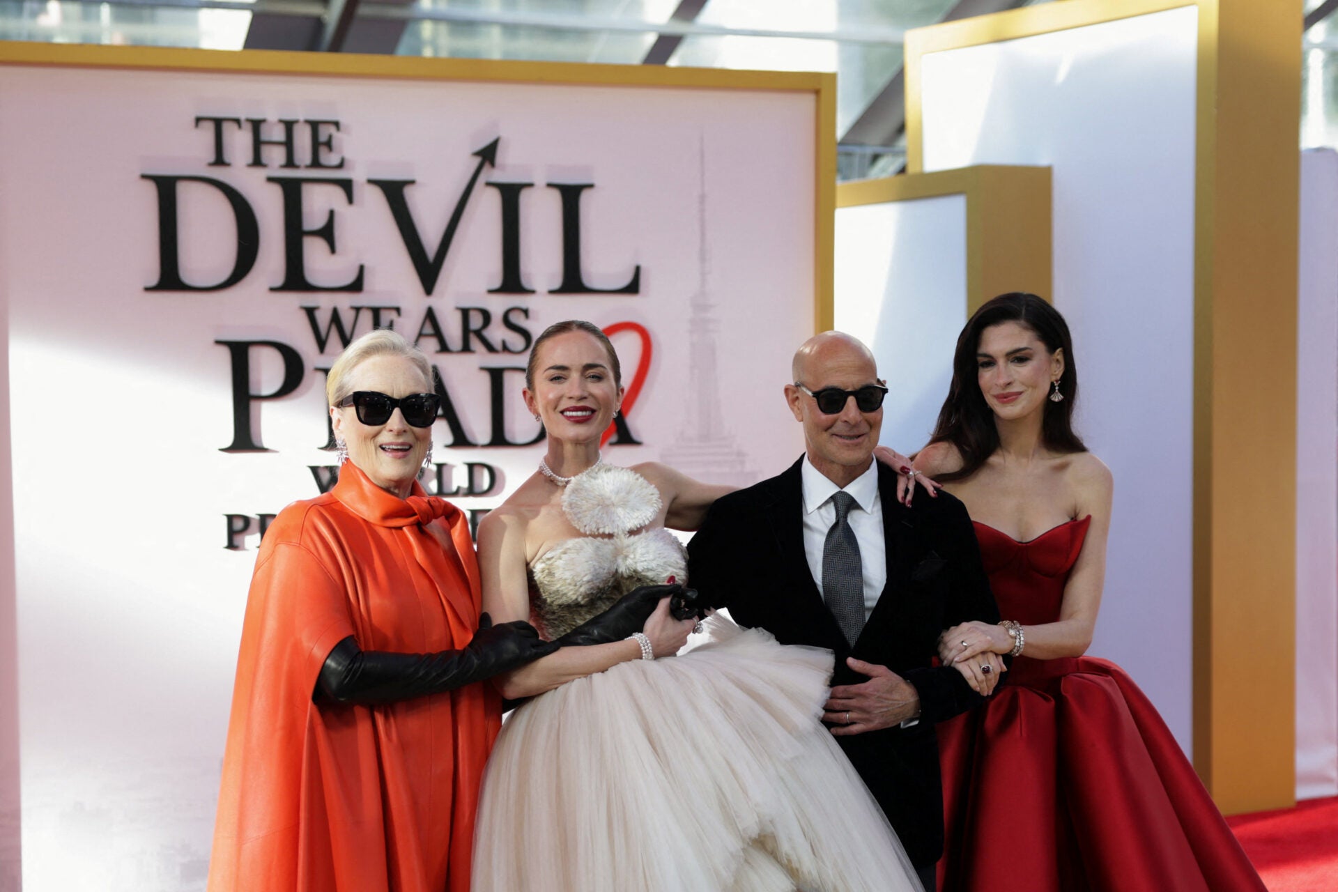Los actores Meryl Streep, Emily Blunt, Stanley Tucci y Anne Hathaway se reúnen en la alfombra roja del estreno de la película.