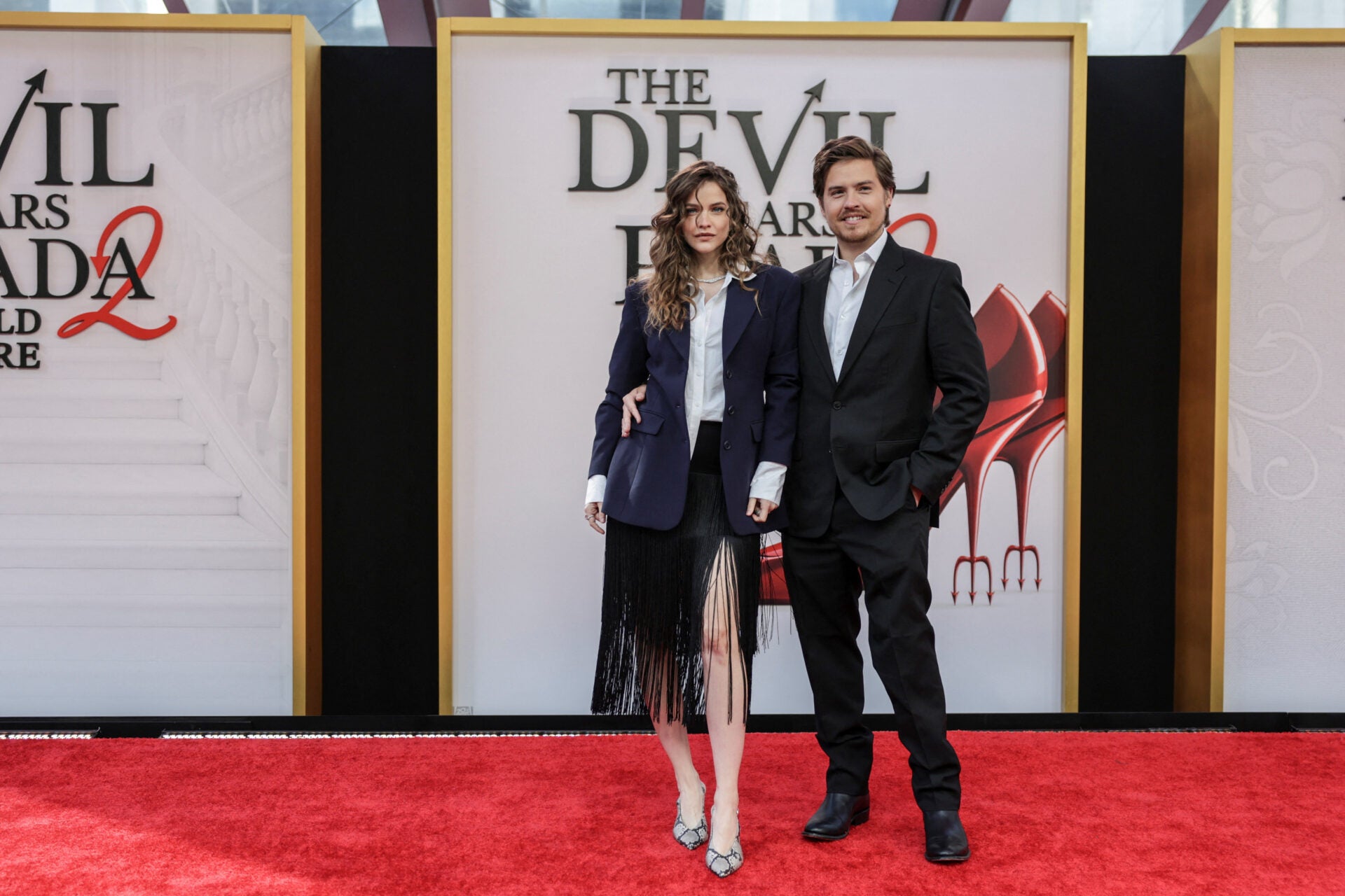 Barbara Sprouse y Dylan Sprouse posan en la alfombra roja de la gala.