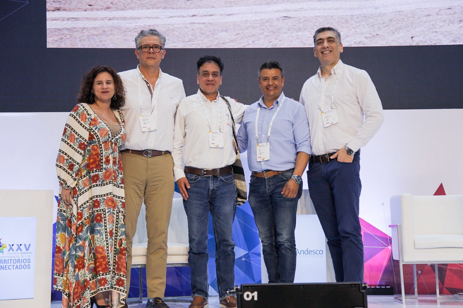 Foto: Rutty Paola Ortiz Jara, de Socia Castelar, y el consultor Ricardo Felipe Herrera; El consultor Alaín Niño; el contralor delegado para la Gestión Pública, Julio César Cárdenas; y Juan José Fuentes, director jurídico de Andesco.