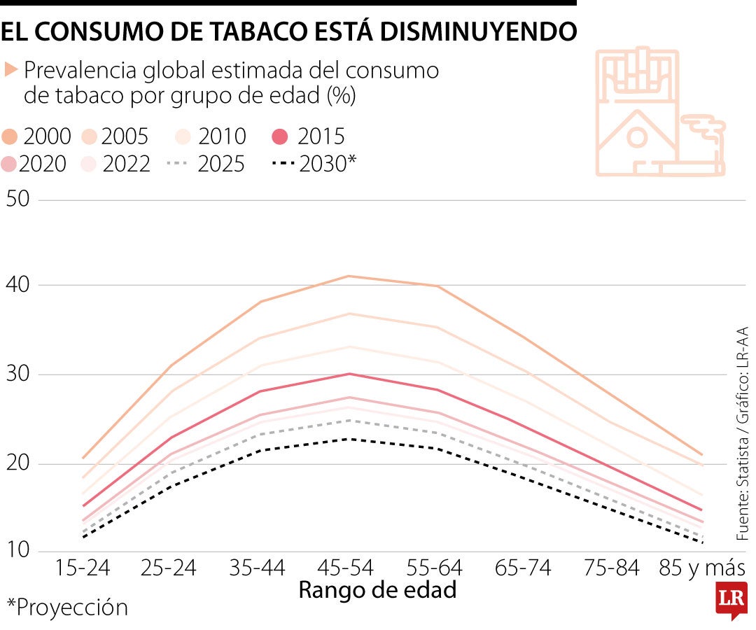 En 2025, se espera que la proporción de población que fuma descenderá a 19,8%, si se tiene en cuenta que para 2020 era de 21,7%